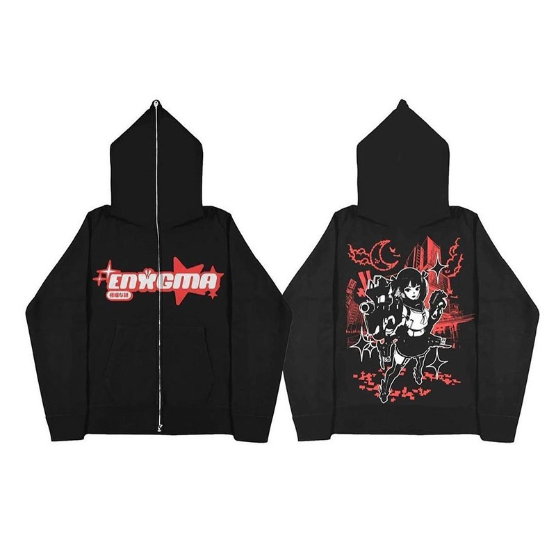 2023 유럽과 미국의 다크 스웨트 셔츠 남녀 후디 고딕 커플 하라주쿠 대형 지퍼 스웨트 셔츠스토어 가기