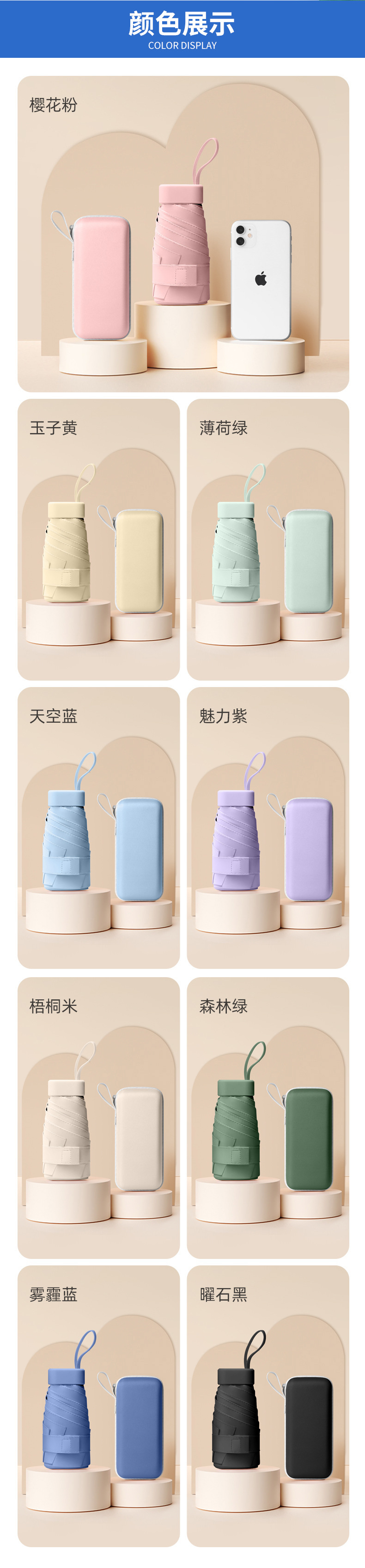 • 34_밀크블루 [6본 50% off 캡슐우산]☂컴팩트하고 휴대 가능☂UPF50+ 프로페셔널 자외선 차단제]