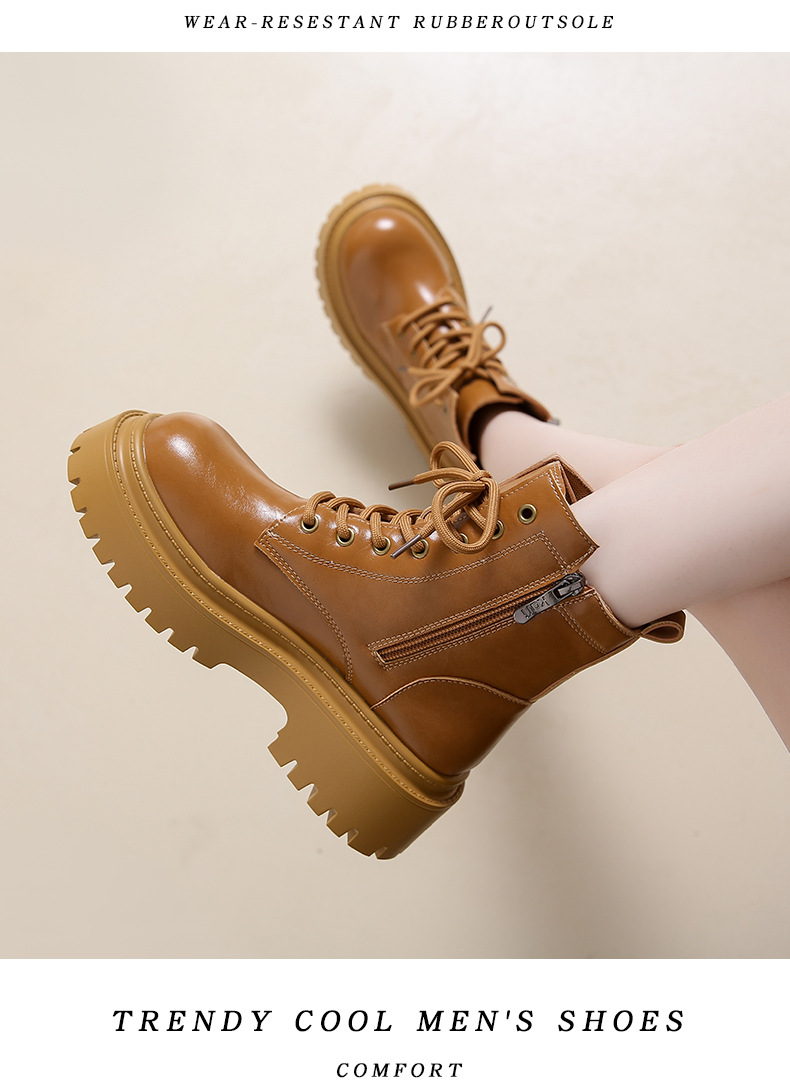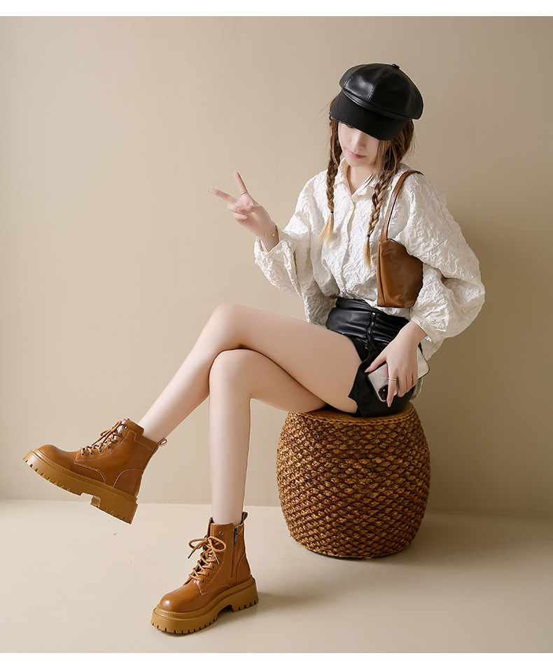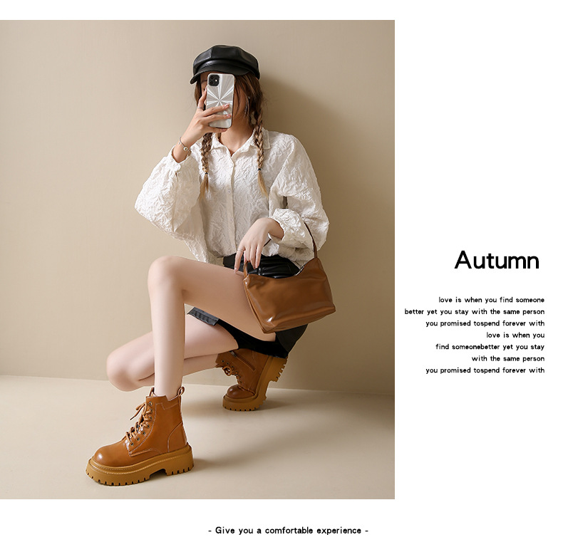 영국 스타일 마틴 부츠 여성의 2024 새로운 가을과 겨울 두꺼운 단독 증가 레트로 짧은 부츠 슬리밍 작업복 대황 부츠스토어 가기