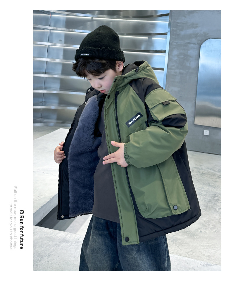소년의 겨울 파이크 옷 면화 패딩 옷 2024 새로운 어린이 양털 추가 재킷 가을과 겨울 큰 어린이 두꺼운 충전 옷스토어 가기