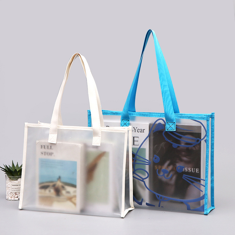 투명 플라스틱 핸드백, PVC 가방 제작, 인쇄 가능한 로고 의류 쇼핑백, 투명 PVC 가방 도매스토어 가기