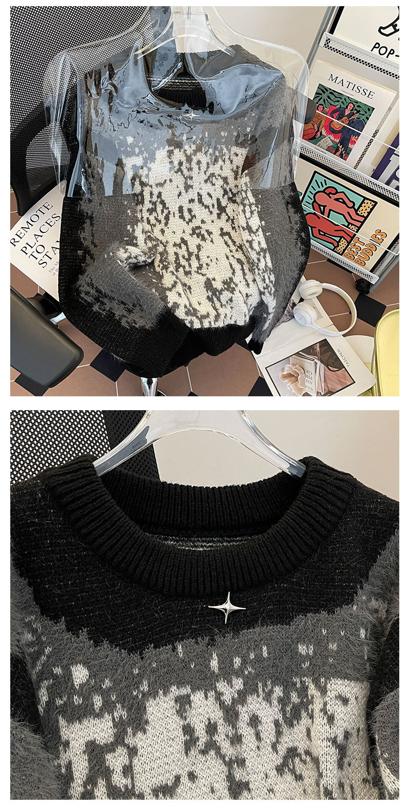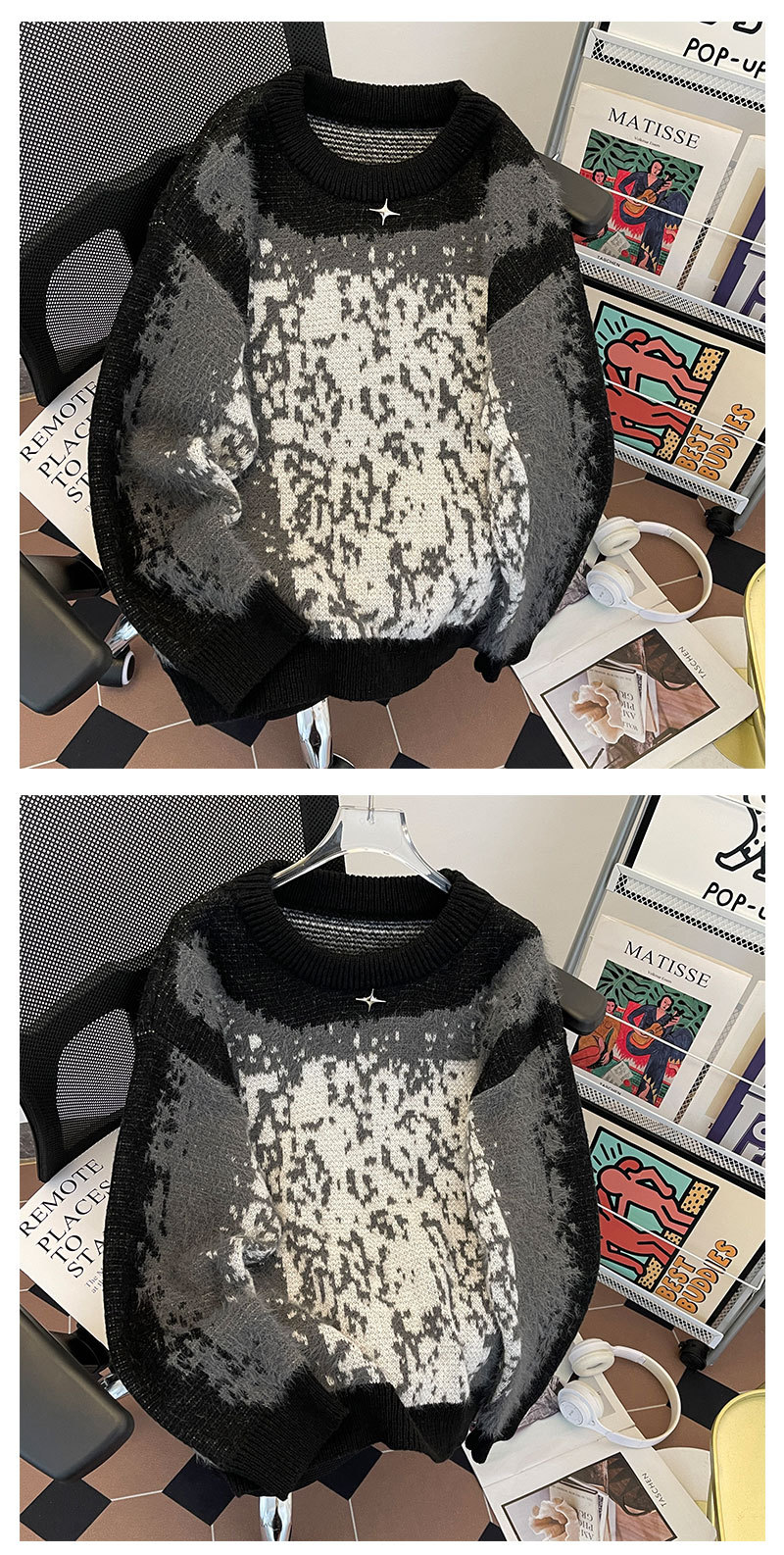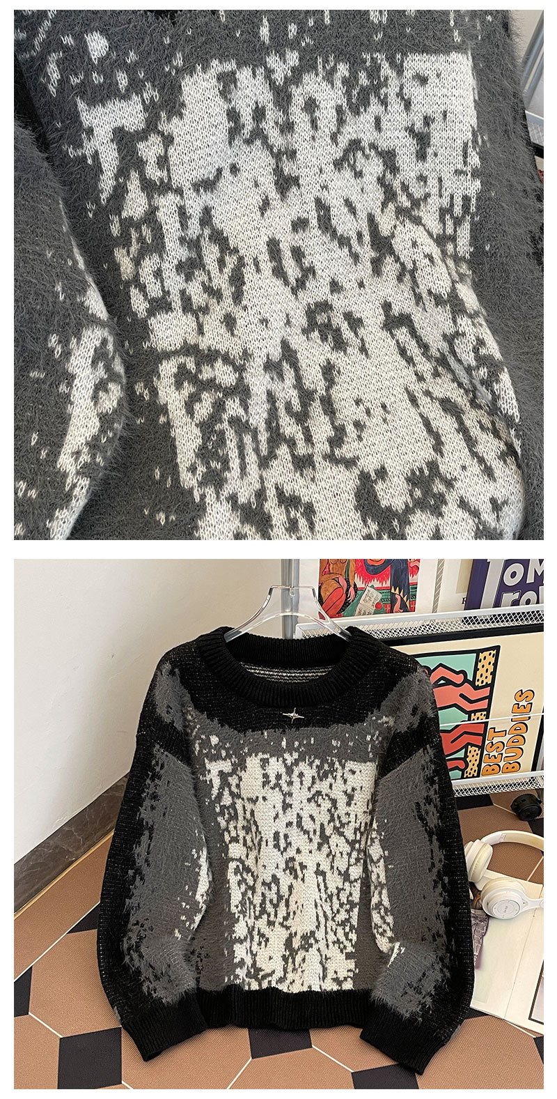 2024 가을과 겨울 새로운 한국 스타일 느슨한 게으른 스타일 부드러운 왁스 스웨터 디자인 센스 니쉬 니트 셔츠 탑스토어 가기