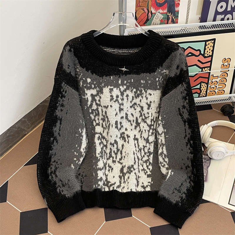 2024 가을과 겨울 새로운 한국 스타일 느슨한 게으른 스타일 부드러운 왁스 스웨터 디자인 센스 니쉬 니트 셔츠 탑