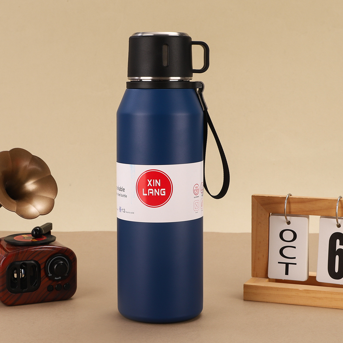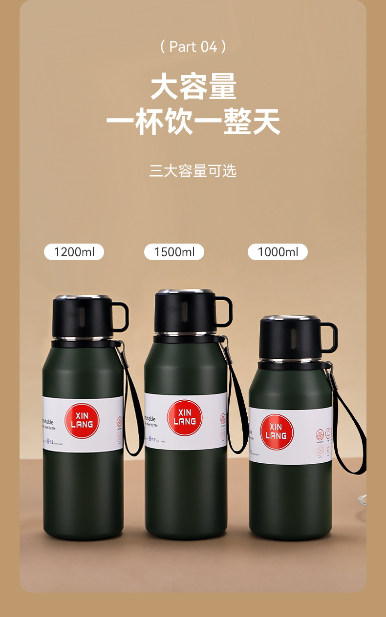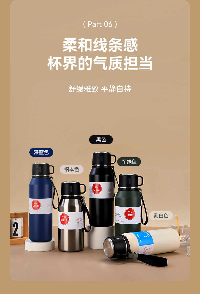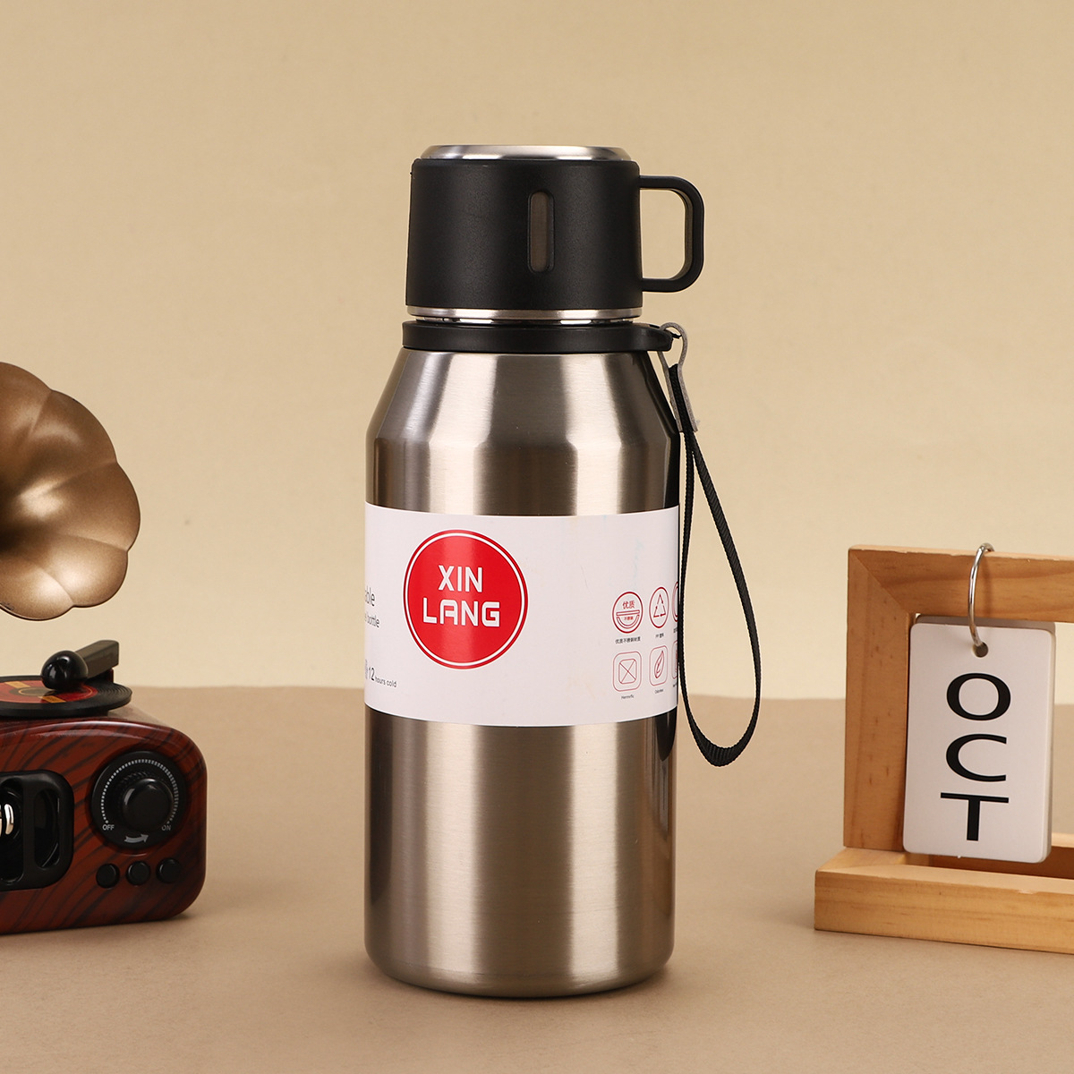 새로운 대용량 스테인레스 스틸 보온병 머그잔 간단한 슬링 티 컵 야외 휴대용 등산 여행 스포츠 주전자