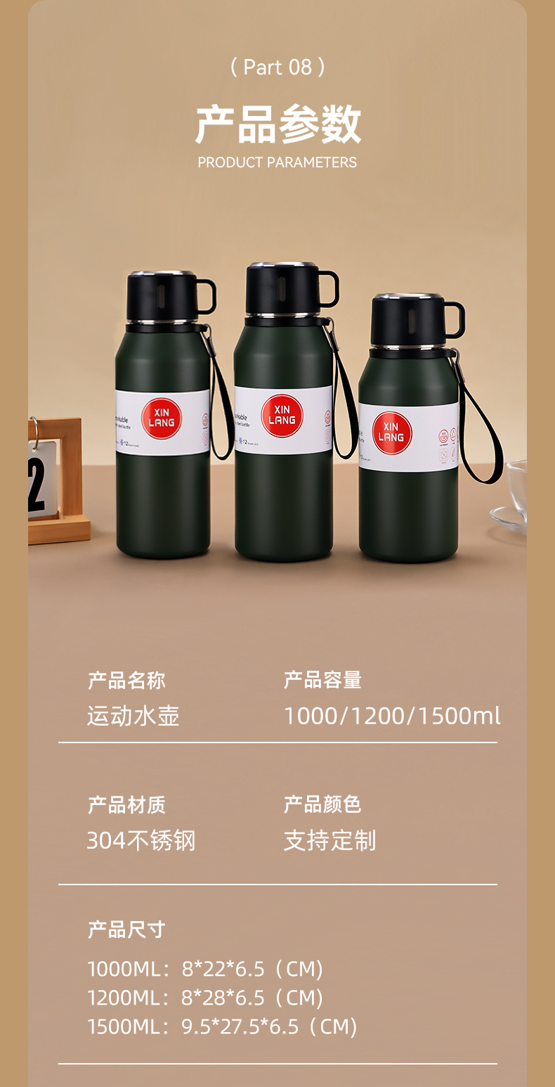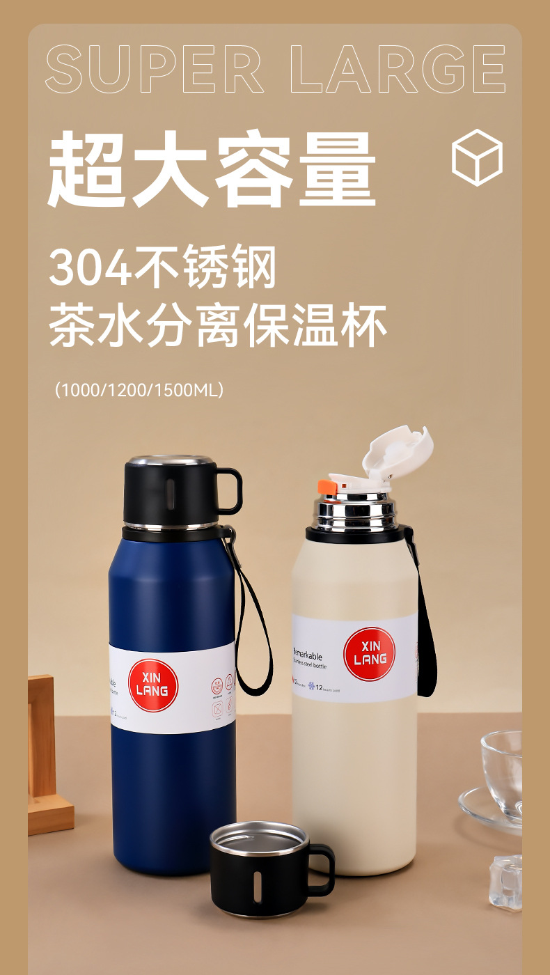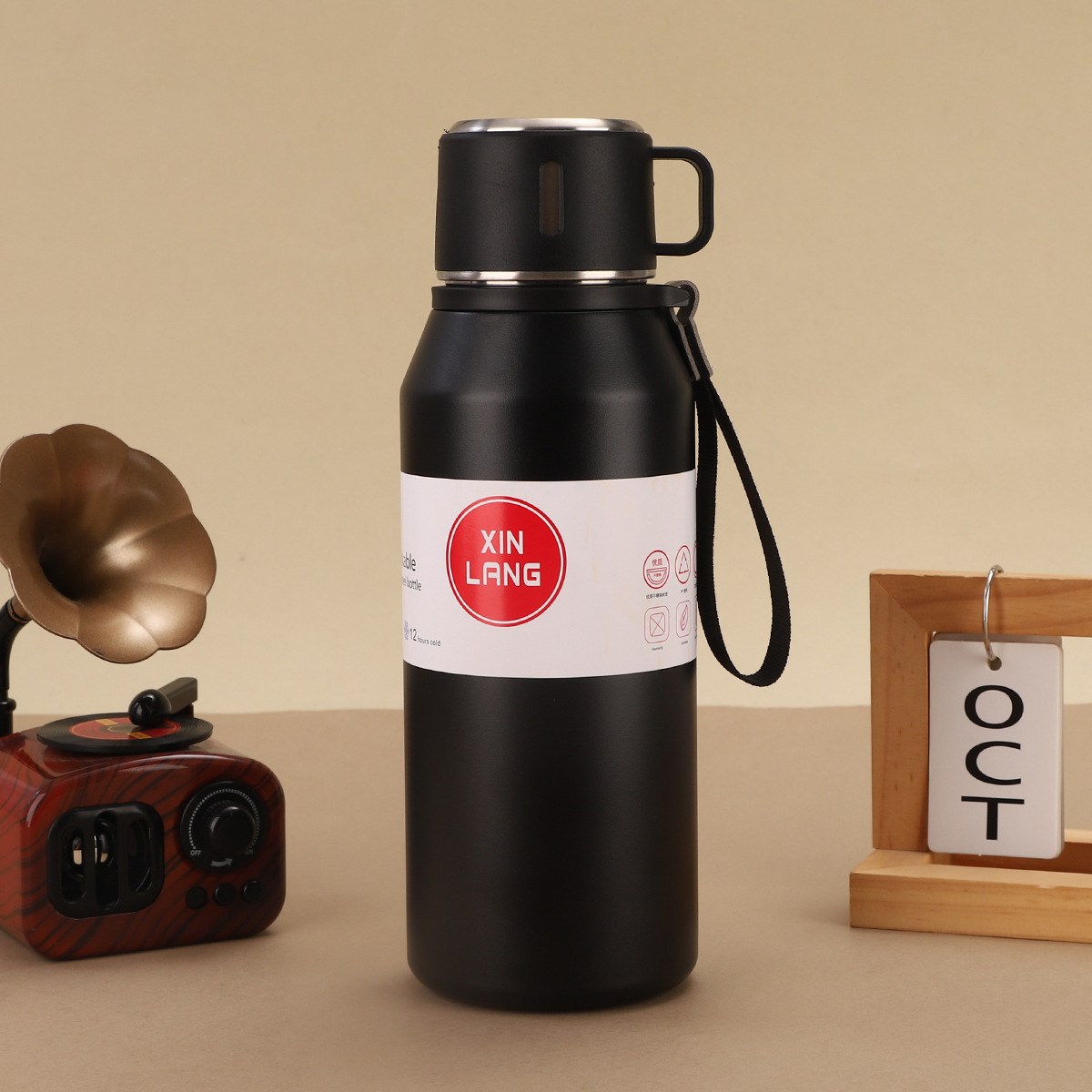 새로운 대용량 스테인레스 스틸 보온병 머그잔 간단한 슬링 티 컵 야외 휴대용 등산 여행 스포츠 주전자