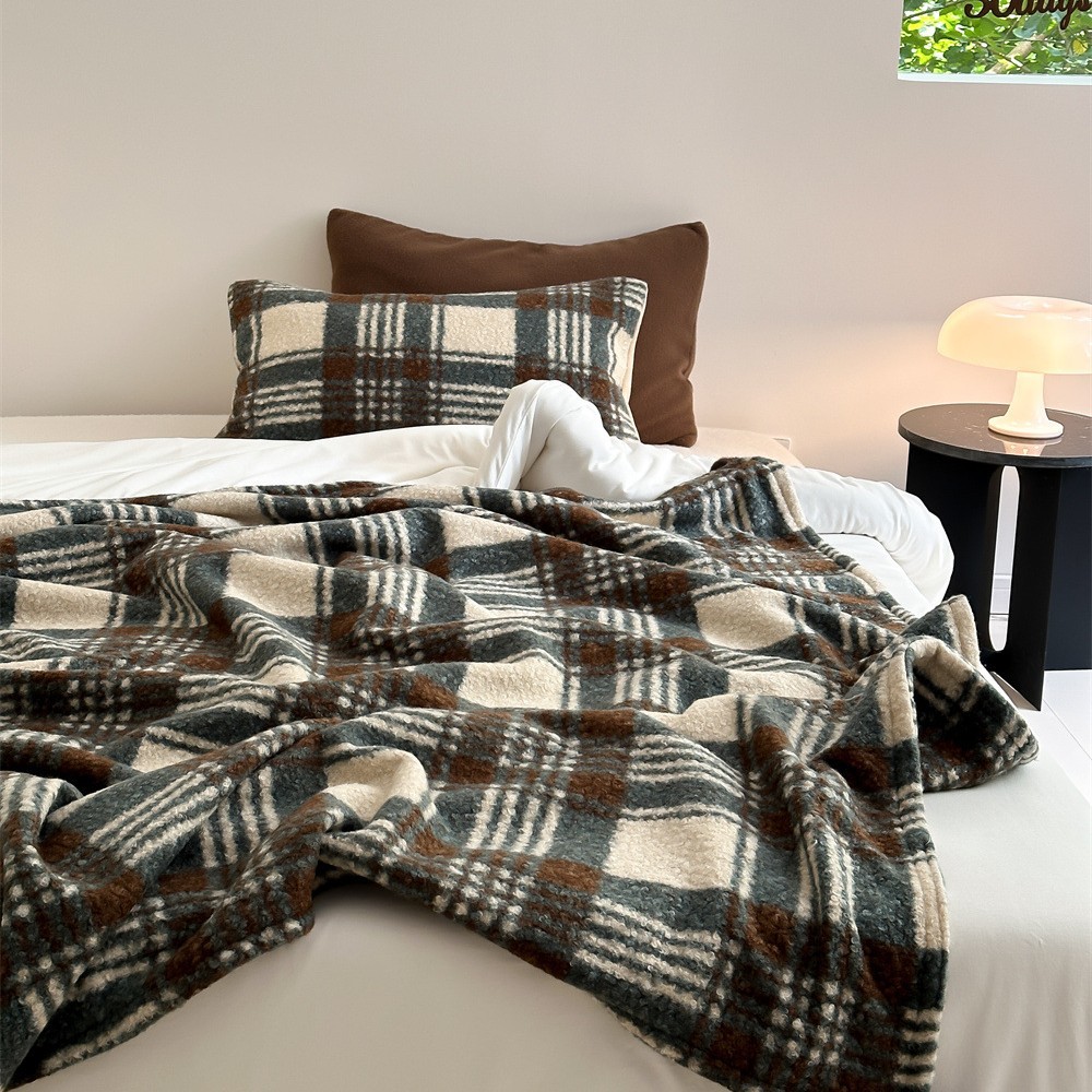 羊卷妮双面盖毯午睡毯英伦格子沙发毯床尾毯车载毯子