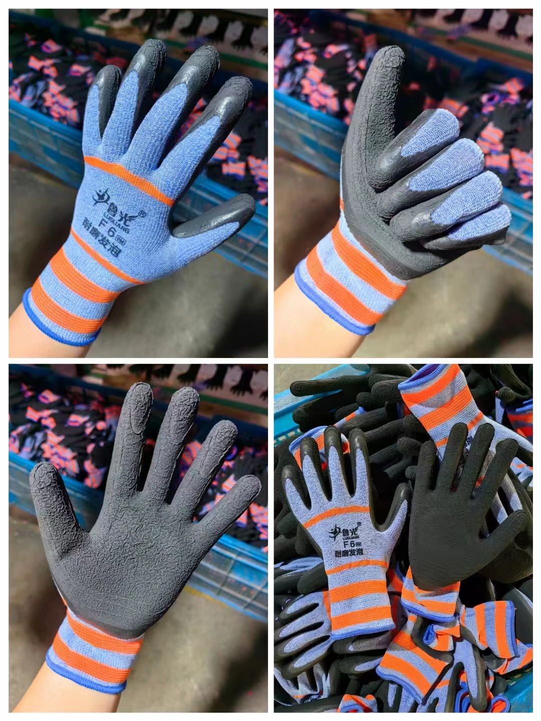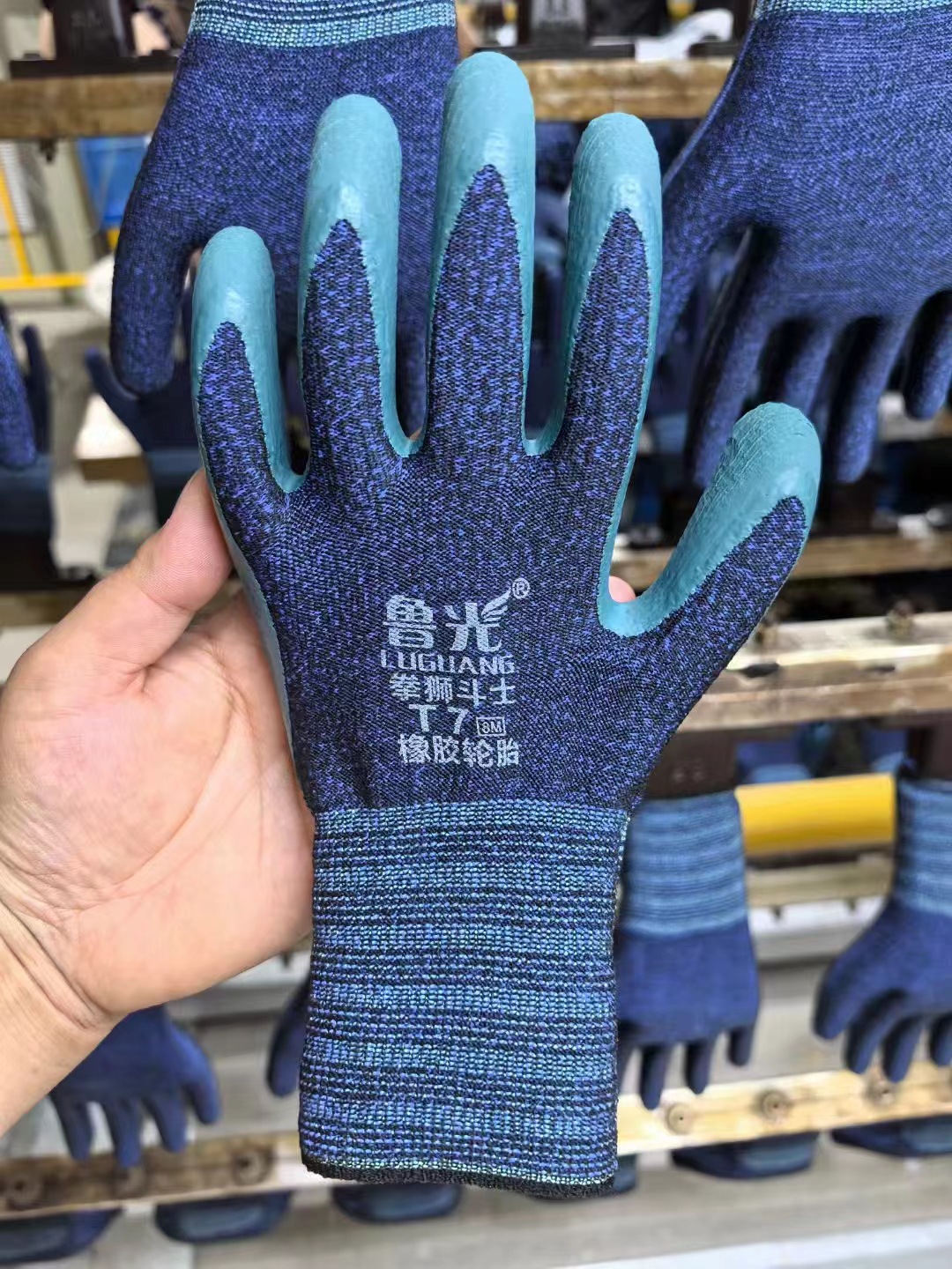 내마모성 킹 장갑 노동 보호 내마모성 코튼 라인 담그기 접착제 주름 고무 두꺼운 유리 공장 작업 보강 노동자 Lu Guang