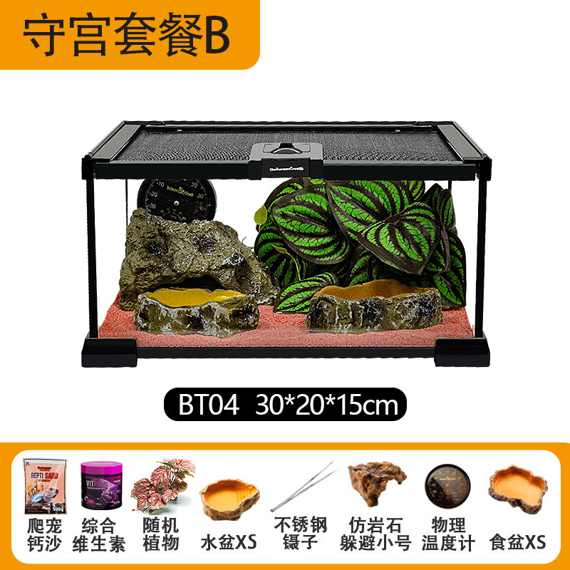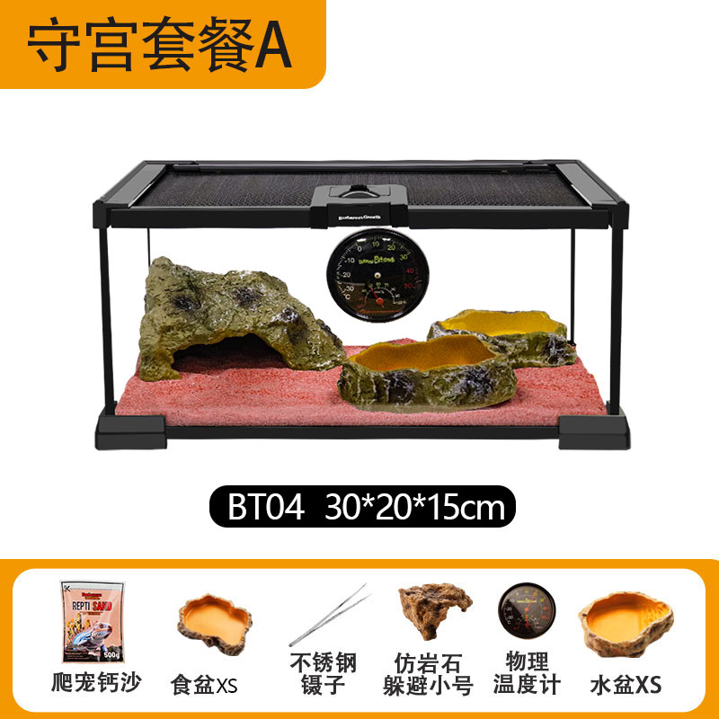 등산 애완 동물 뱀 유리 먹이 상자 Shougong 먹이 상자 뿔 개구리 거미 도마뱀 열대 우림 생태 게 탱크 소라게스토어 가기