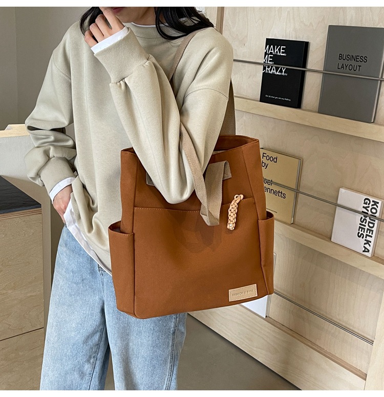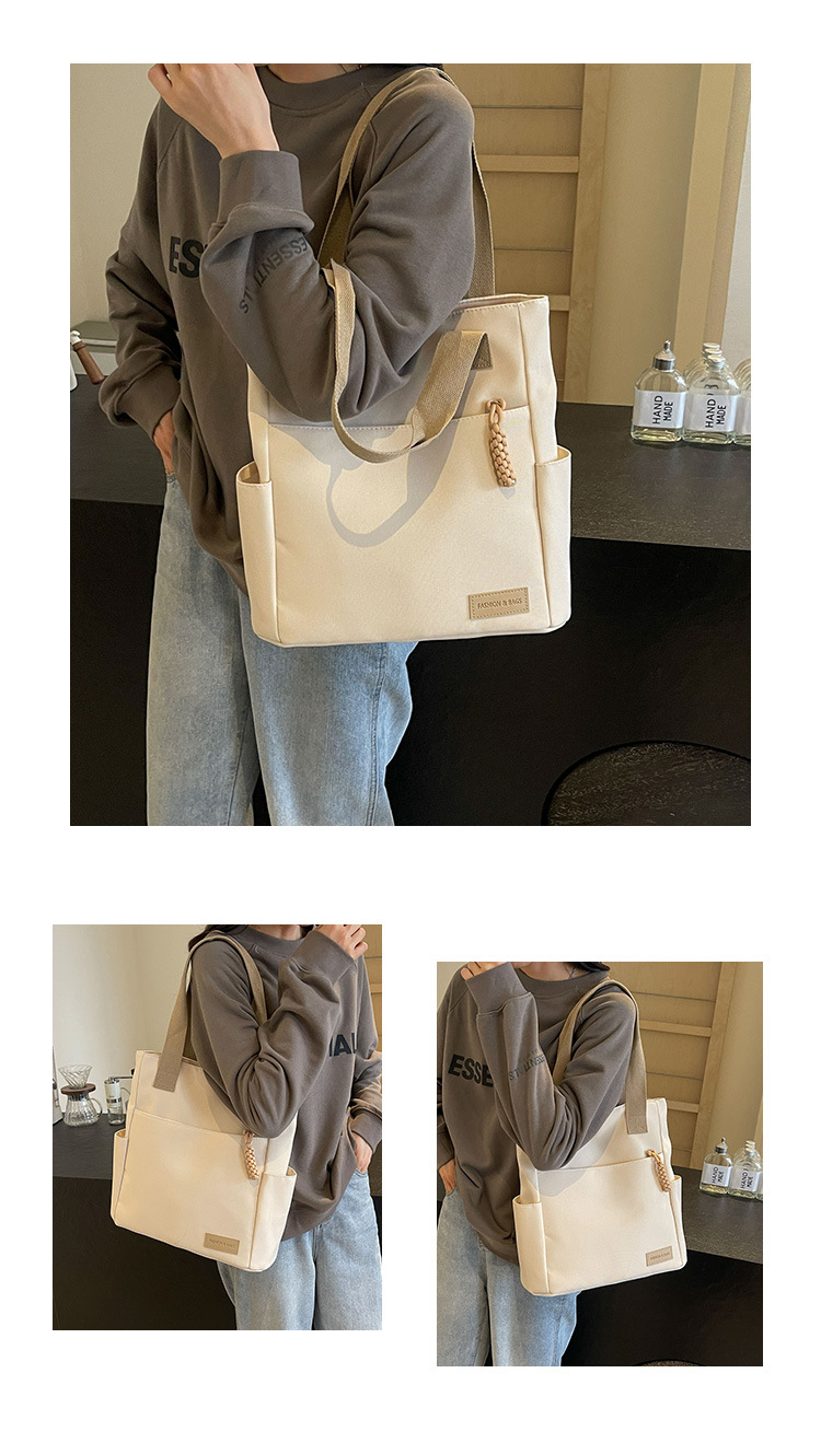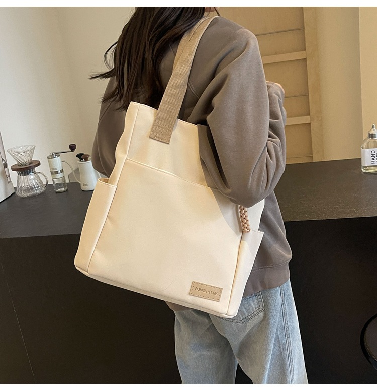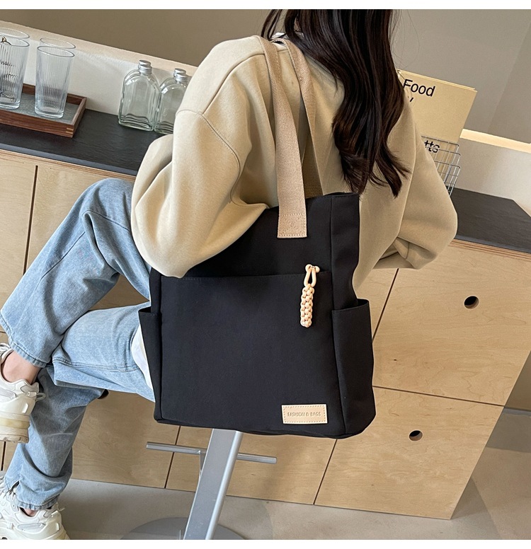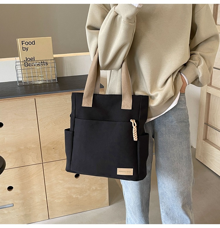아카데미 스타일 캔버스 어깨 가방 간단한 대용량 올 매치 캐주얼 휴대용 책 가방 작업 통근 크로스 바디 토트 백