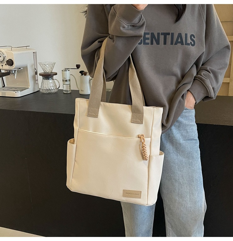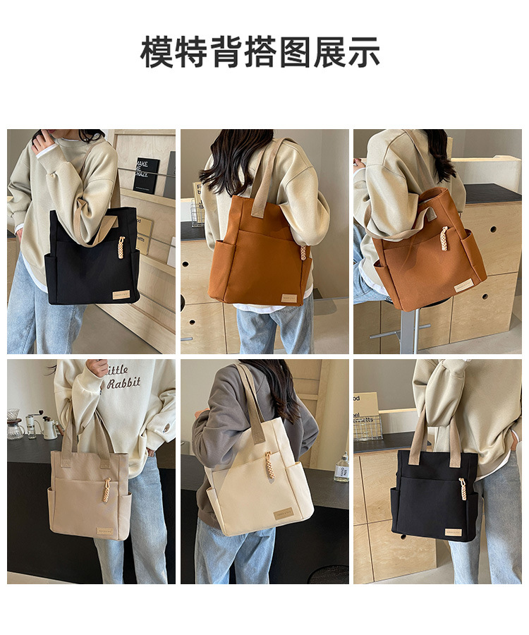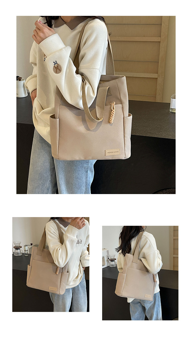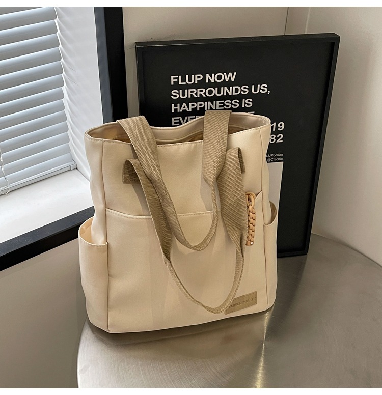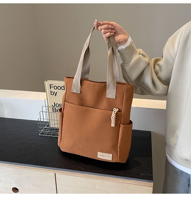 아카데미 스타일 캔버스 어깨 가방 간단한 대용량 올 매치 캐주얼 휴대용 책 가방 작업 통근 크로스 바디 토트 백