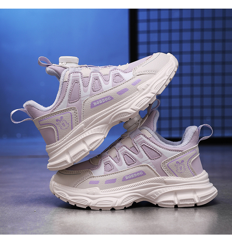 바부 콩 기모 가죽 2024 가을과 겨울 신발 어린이 아버지 운동화 면화 여성 신발 큰 아이들의 새로운