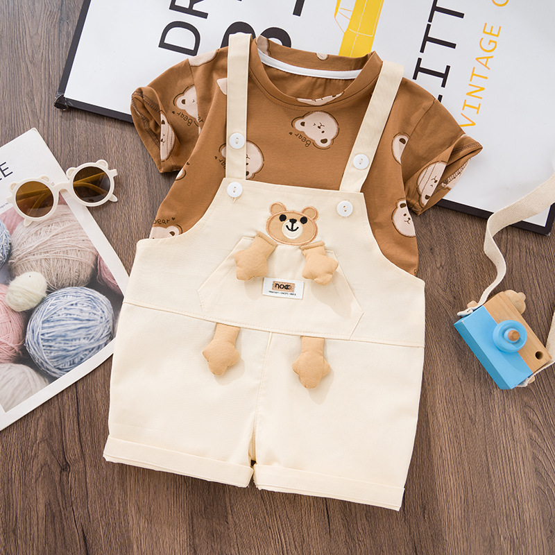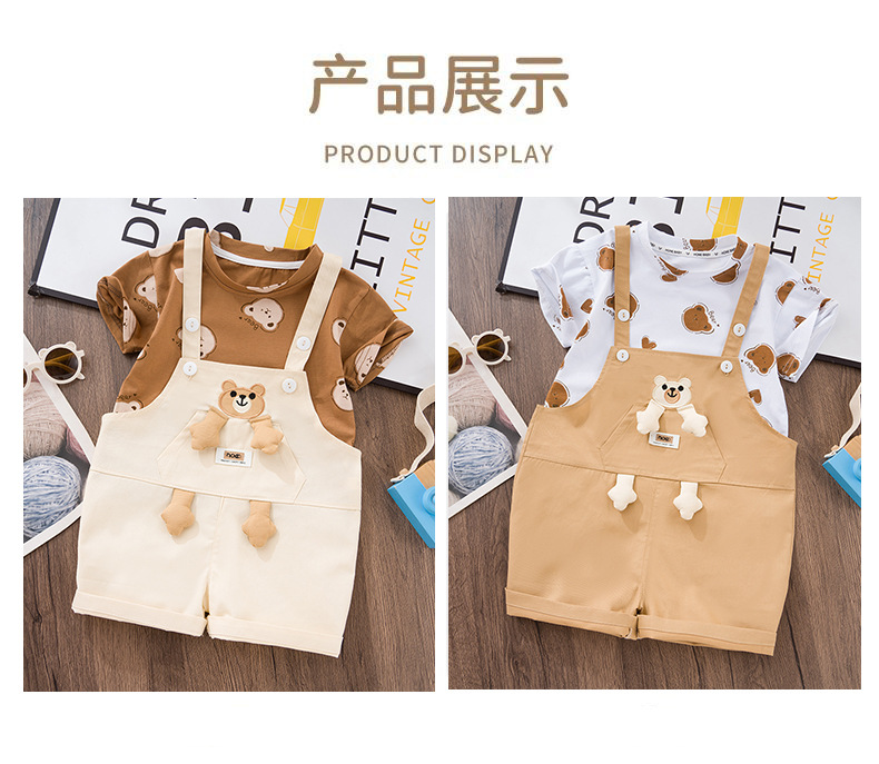 아기 여름 세트 2025 신상 멋진 남아 반팔 티셔츠 여아 멜빵바지 아동 여름옷 투피스 세트스토어 가기