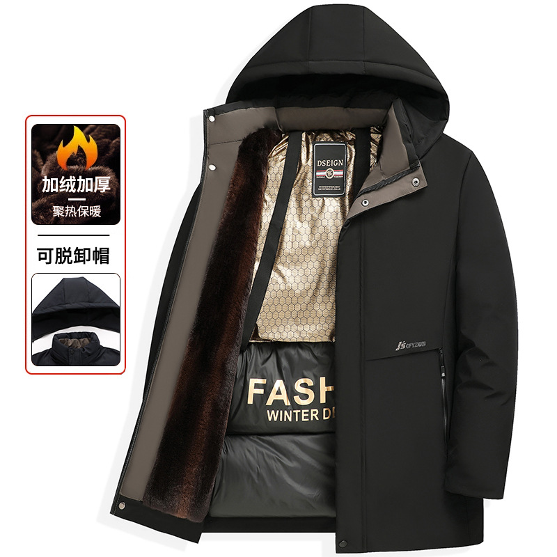 겨울 옷 플러스 사이즈 블랙 골드 다운 코튼 패딩 의류 남성용 따뜻한 방풍 재킷 남성용 비즈니스 중년 및 노인 기모 남성용 두꺼운 코튼 패딩 자켓