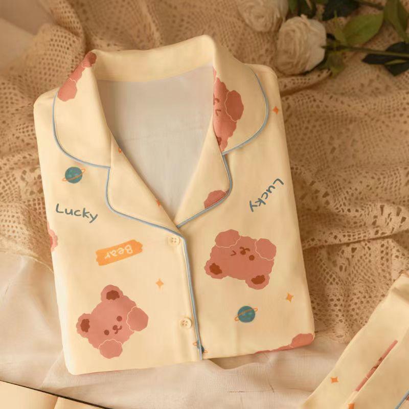 고급 잠옷 여성 봄 · 가을 플러스 사이즈 긴팔 한국식 학생용 기숙사 가을과 겨울 느슨한 만화 홈 옷스토어 가기