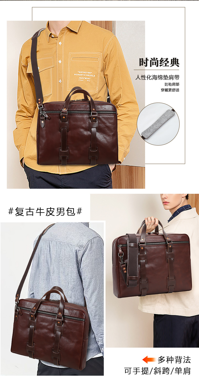 야채 태닝 가죽 서류 가방 남성 하이 엔드 레트로 정품 가죽 노트북 가방 탑 레이어 Cowhide 비즈니스 크로스 바디 백 트렌디스토어 가기
