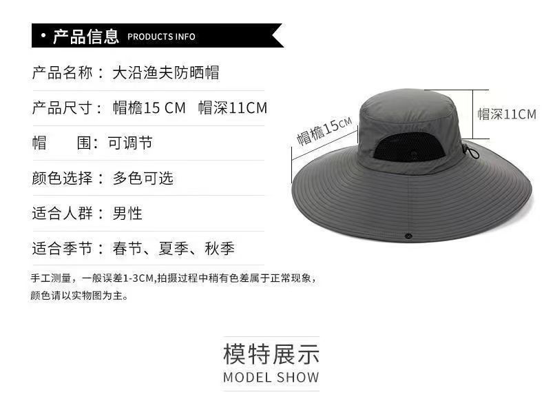 큰 테두리 15cm 방수 빠른 건조 여름 야외 작업 선 스크린 모자 남자의 통기성 등산 낚시 안티 자외선 낚시