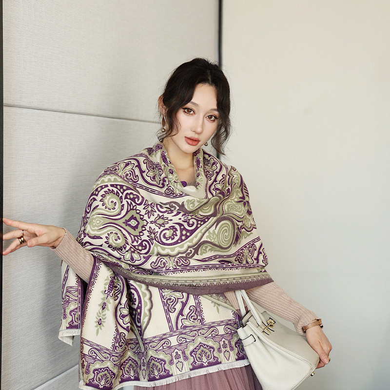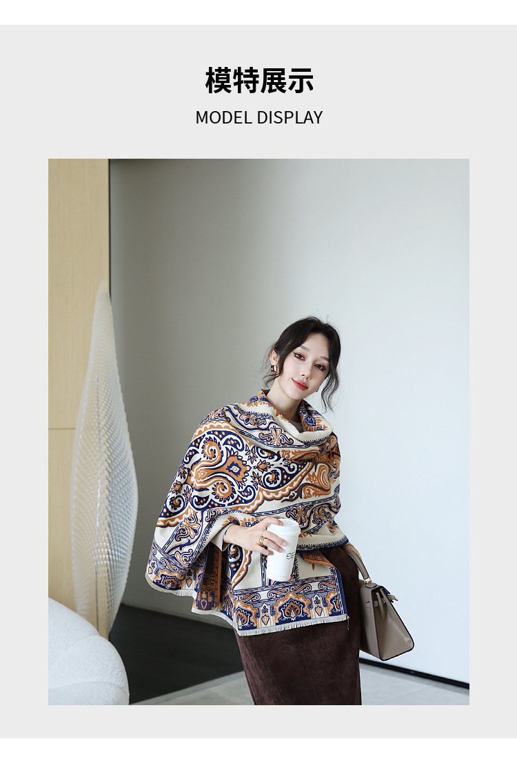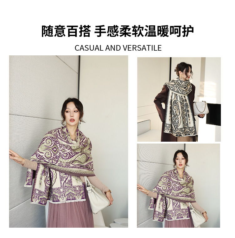 围巾冬季女复古时尚仿羊绒提花披肩女新款百搭加厚保暖护颈围脖