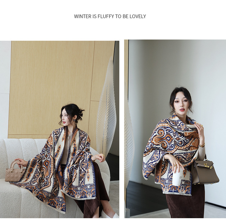 스카프 겨울 여성 빈티지 패션 모방 캐시미어 자카드 목도리 여성의 새로운 올 매치 두꺼운 따뜻한 목 보호 스카프스토어 가기