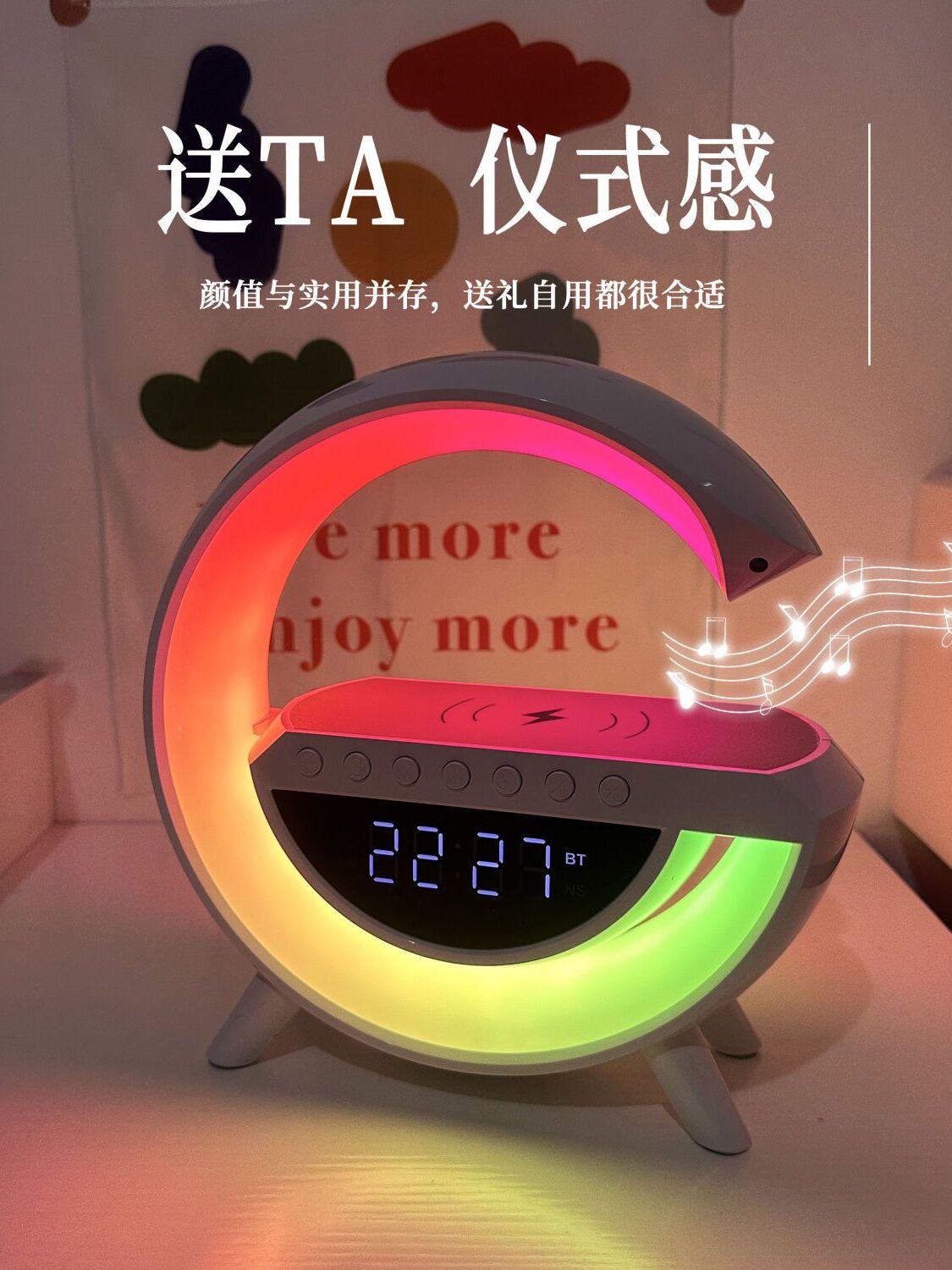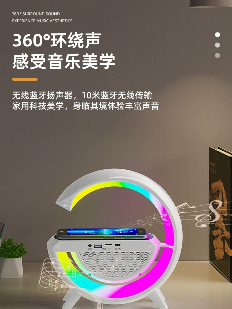 블루투스 스피커 무선 충전 다기능 분위기 나이트 라이트 알람 시계 생일 선물 휴대 전화 오디오 실용적인 홈스토어 가기