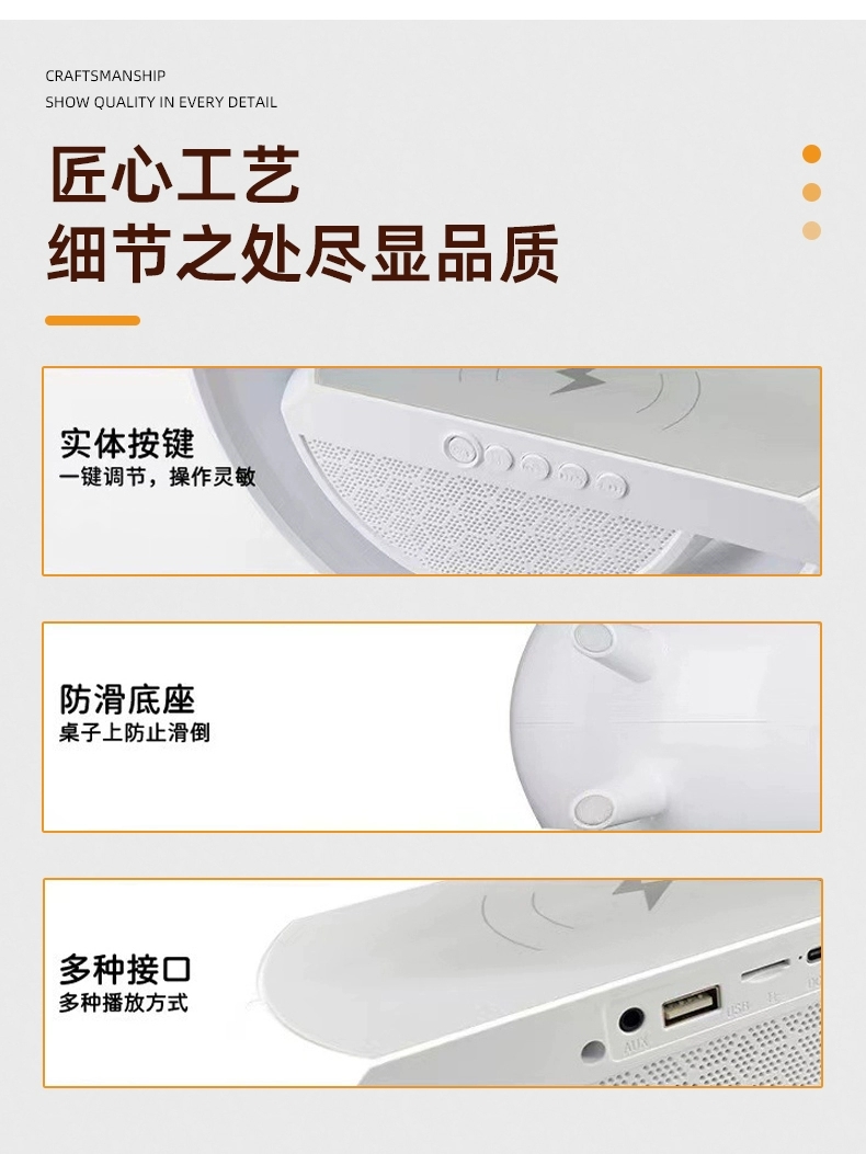 • 상위 모델: 디지털 디스플레이 + 스피커 + 알람 시계 + 무선 충전 + 13색 야간 조명 + 대형