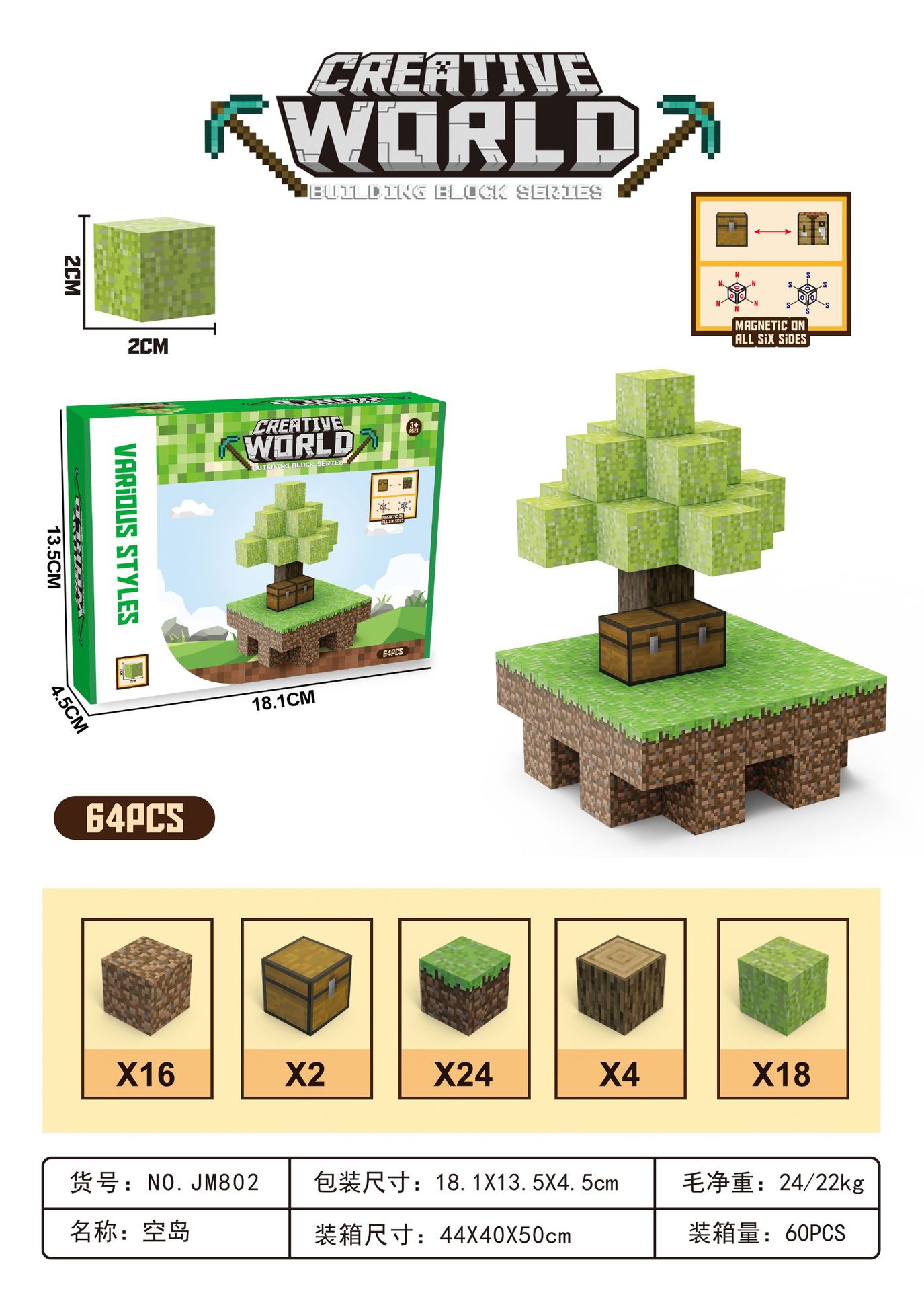 내 세계 큰 입자 마그네틱 스퀘어 빌딩 블록 DIY 조립 퍼즐 교육 장난감 크리스마스 마그네틱 빌딩 블록