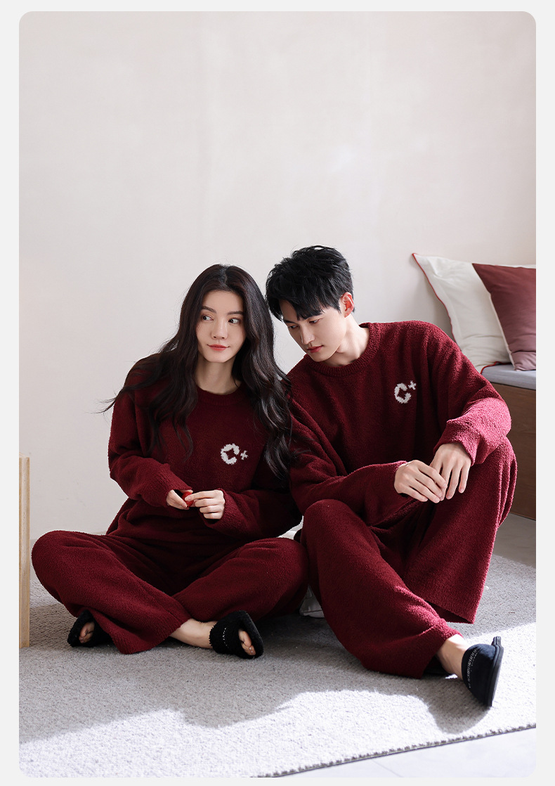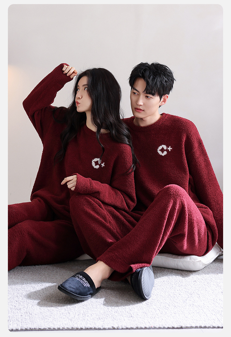 2024 새로운 두꺼운 커플 파자마 겨울 남자 하프 벨벳 세트 여성용 플러스 사이즈 홈 옷스토어 가기