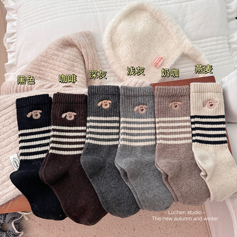 강아지 파라다이스 "가을과 겨울에 여성을위한 자수 만화 줄무늬 양모 양말 두꺼운 따뜻한 올 매치 더미 양말 I