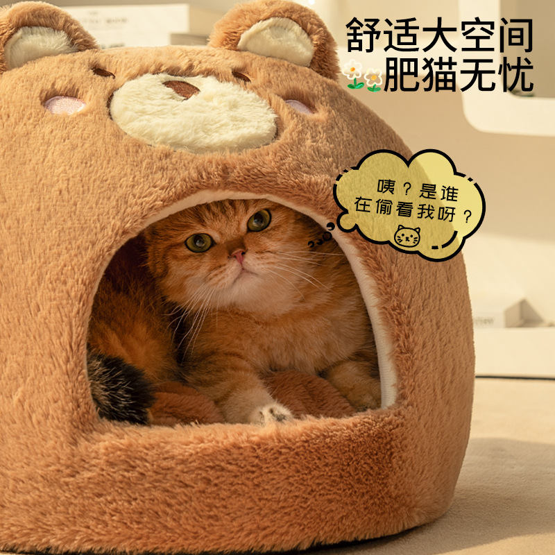 고양이 둥지 겨울 따뜻한 겨울 닫힌 고양이 집 사계절 유니버설 작은 개 사육장 개 침대 고양이 애완 동물 용품스토어 가기