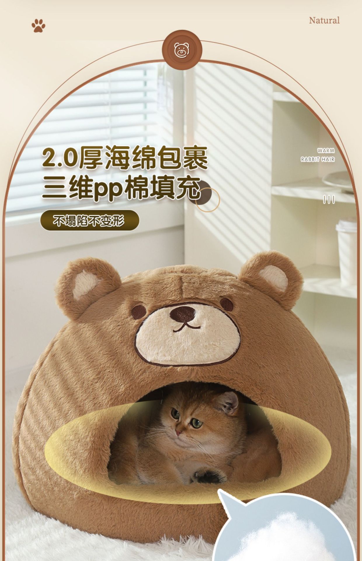 • 곰풍 폐쇄형 고양이 둥지 [방풍 및 따뜻함]