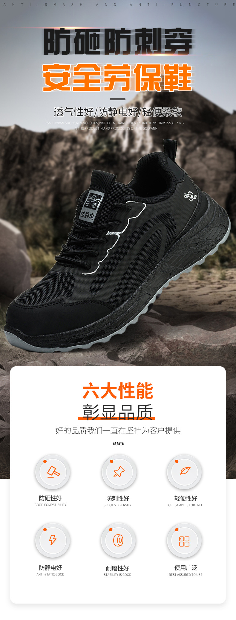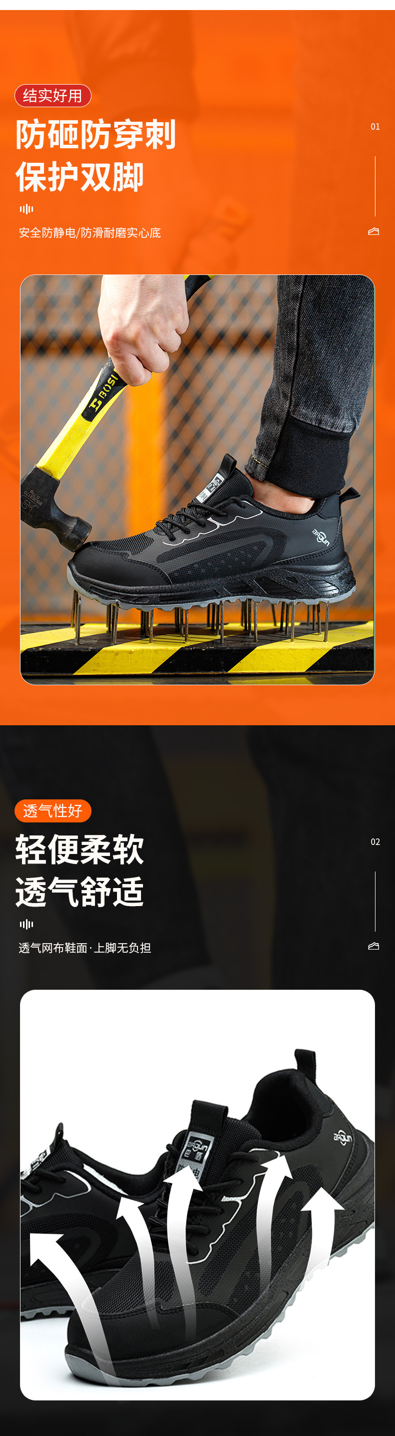 남성용 노동 보호 신발, 초경량, 통기성, 사계절 내구성, 충격 방지, 플라스틱, 펑크 방지, 정전기 방지 노동 보호 신발