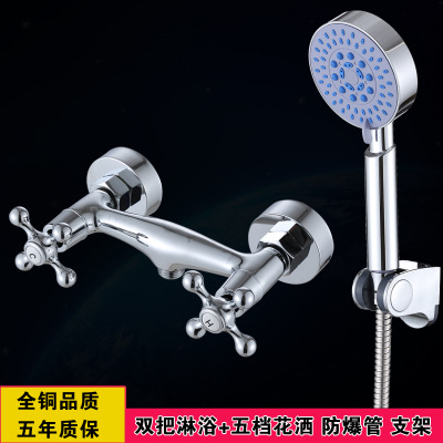 모든 구리 샤워 수도꼭지 더블 더블 컨트롤 욕조 수도꼭지는 물 배출구 밑에 차가운 뜨거운 혼합 밸브 욕조 샤워 세트 은폐했습니다.