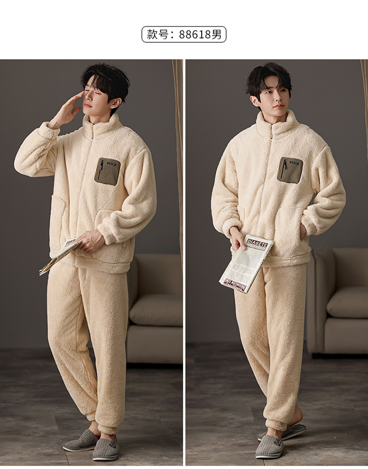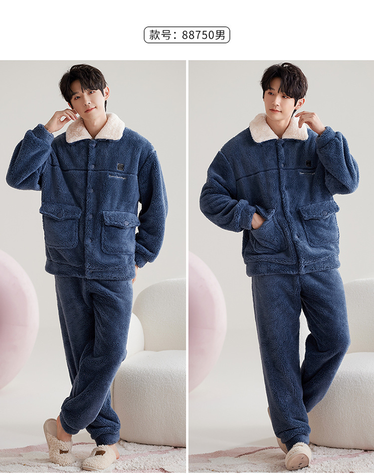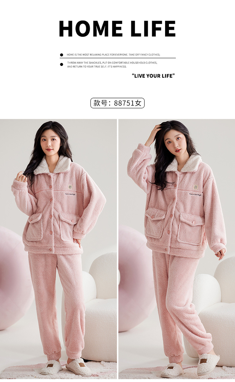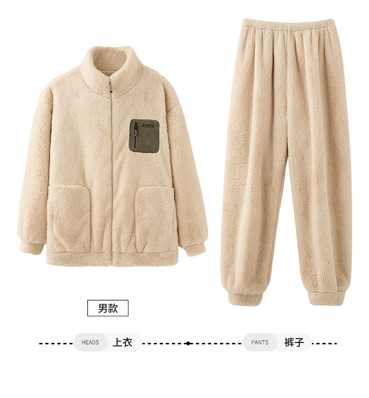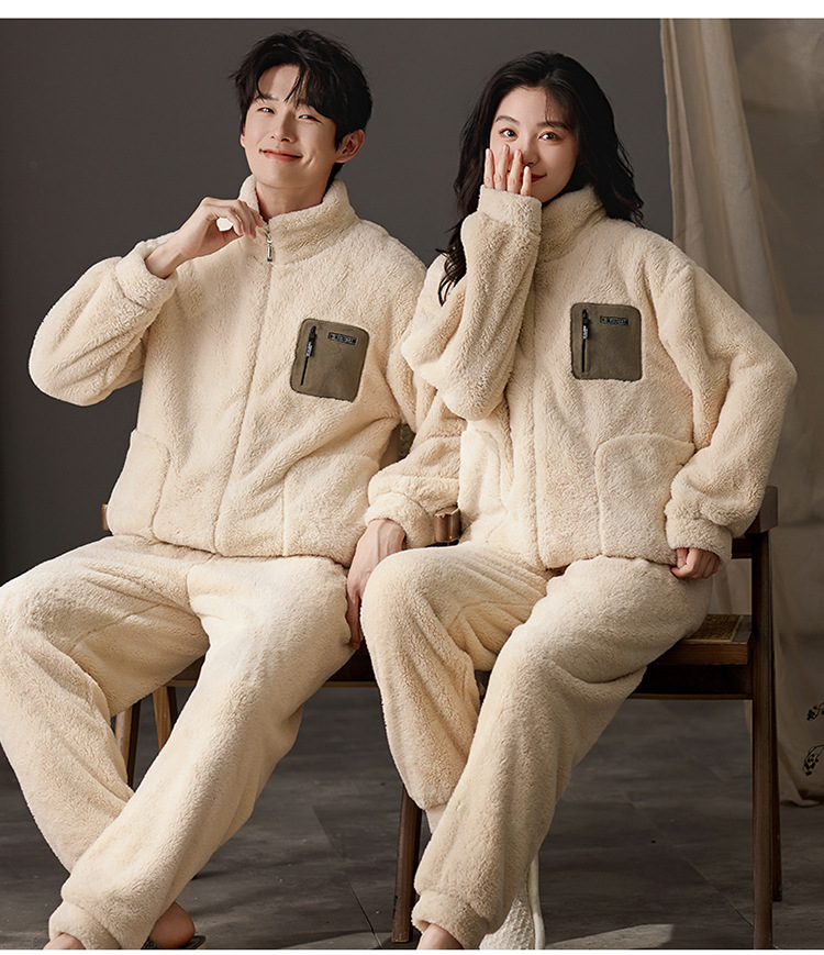 커플 파자마 산호 양털 겨울 두꺼운 여성 달콤한 귀여운 플란넬 의상 남성 홈 의류 세트