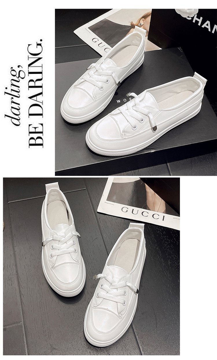 대외 무역 화이트 슈즈 2025 신상 얕은 앞코 라운드 토 로우탑 캐주얼 신발 레이스업 플랫솔 학생 운동화 여성 도매스토어 가기