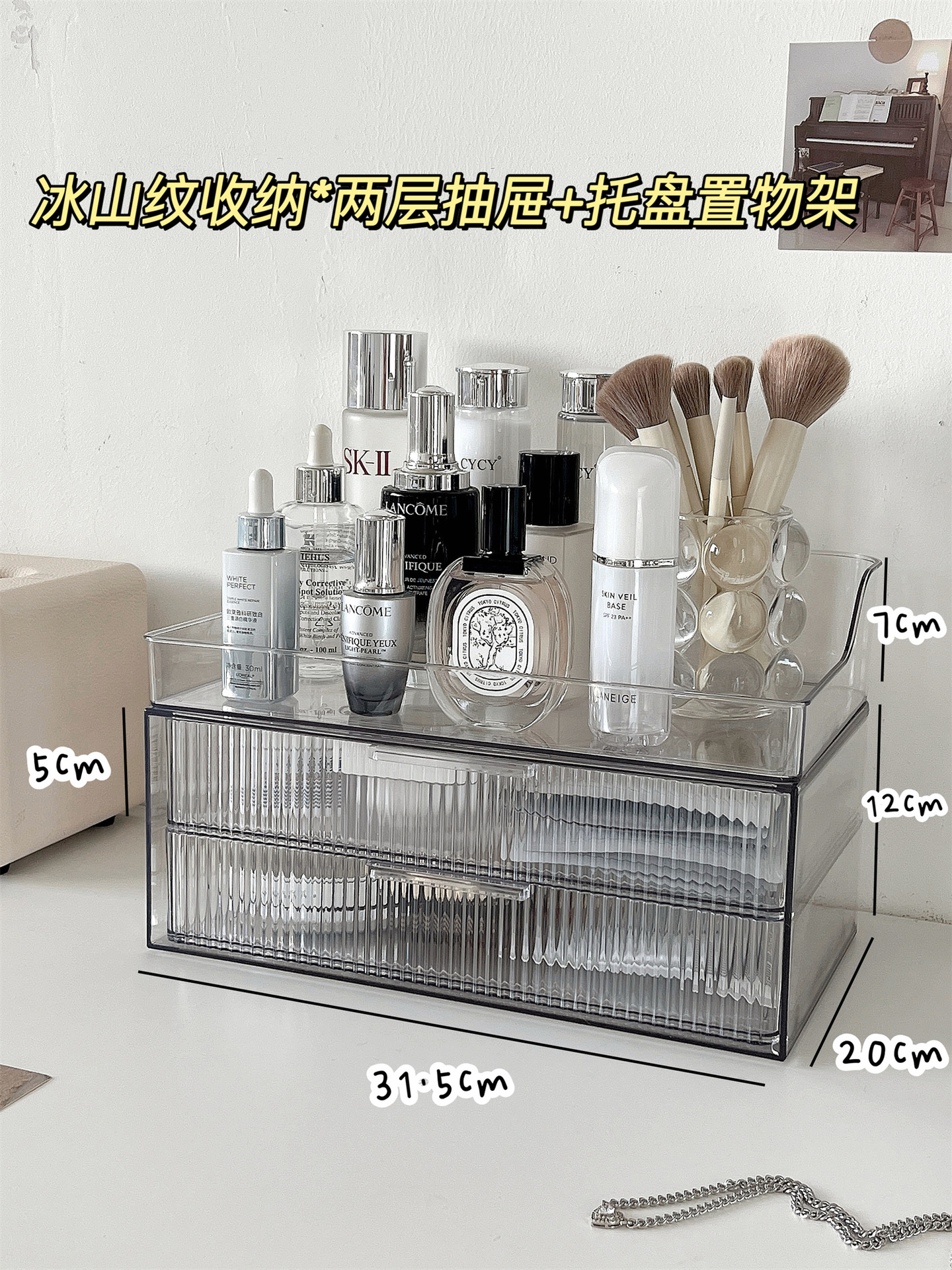 • 아이스버그 패턴 수납* 2단 서랍 + 트레이 수납선반 + 립스틱 박스
