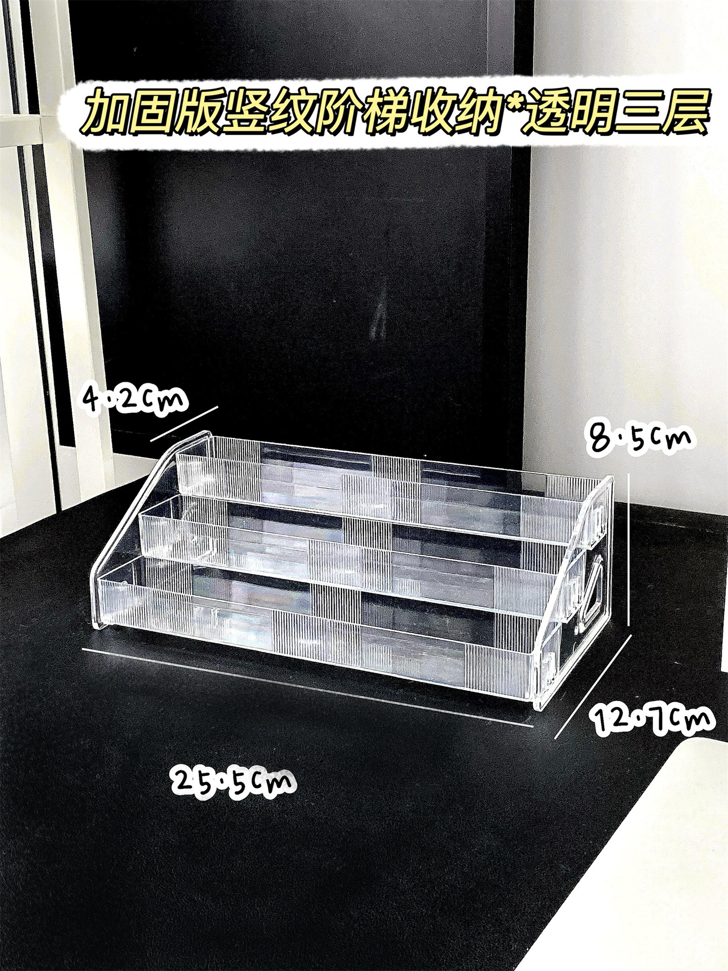• 투명한 검정색 세로 패턴 스태킹 보관함*3개 세트