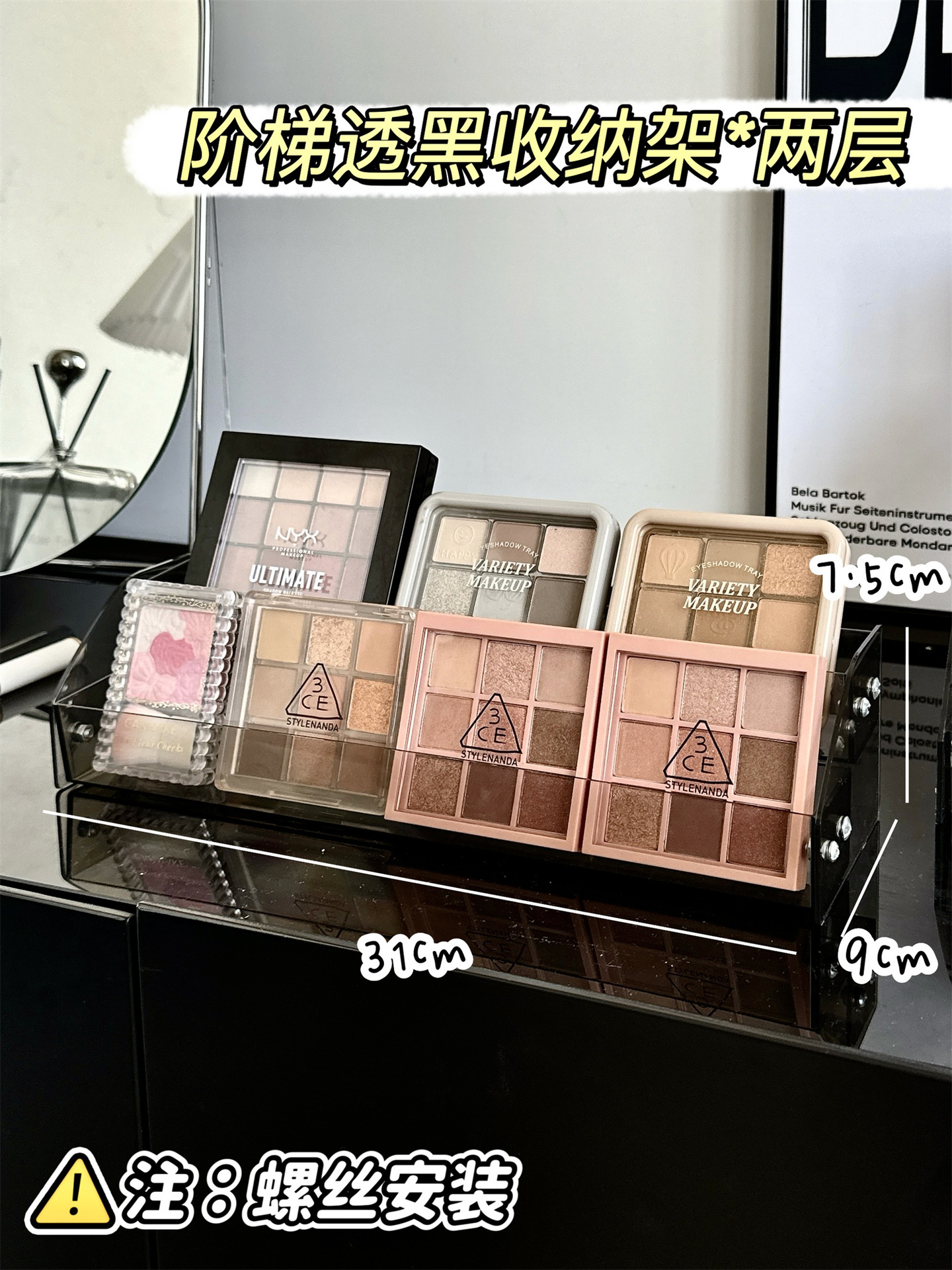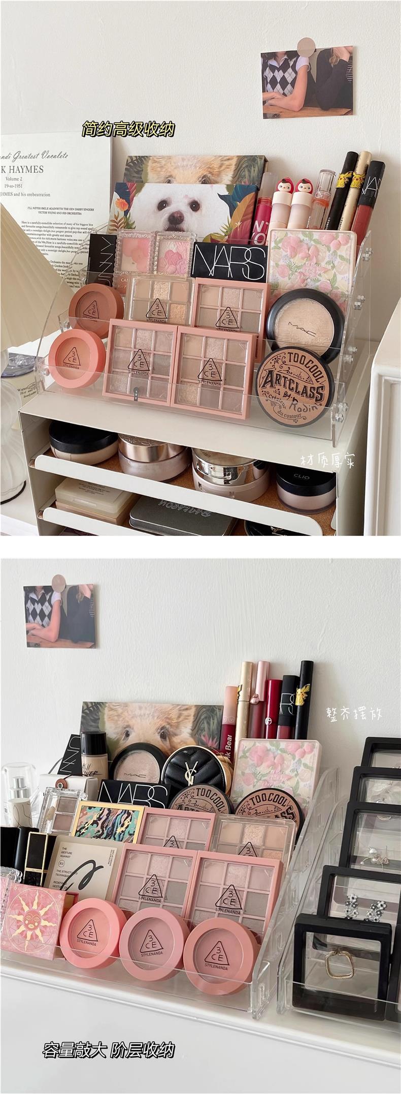 화장품 선반 데스크탑 스토리지 박스 립스틱 아이 섀도우 플레이트 드레싱 테이블 선반 아크릴 디스플레이 랙 캐비닛