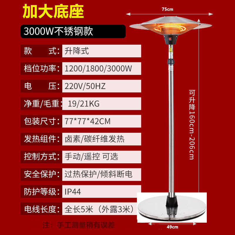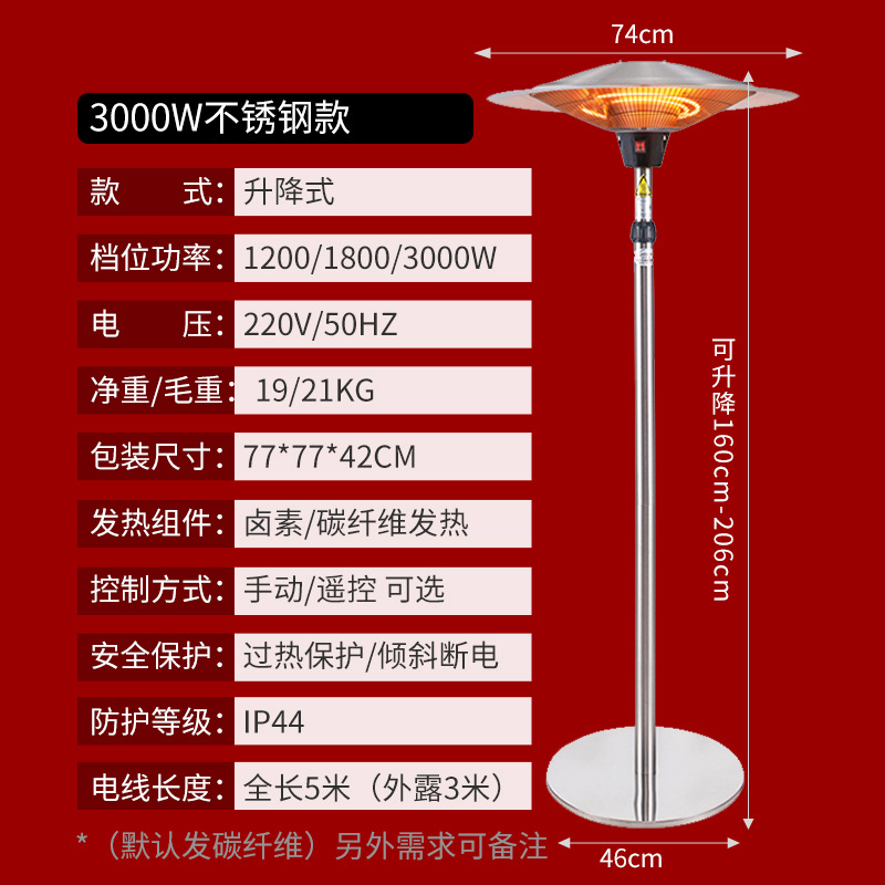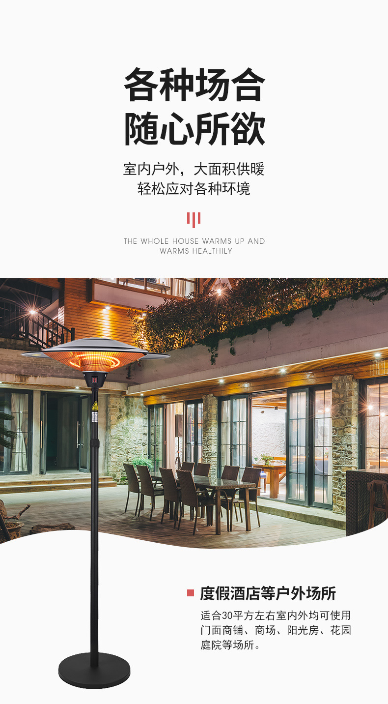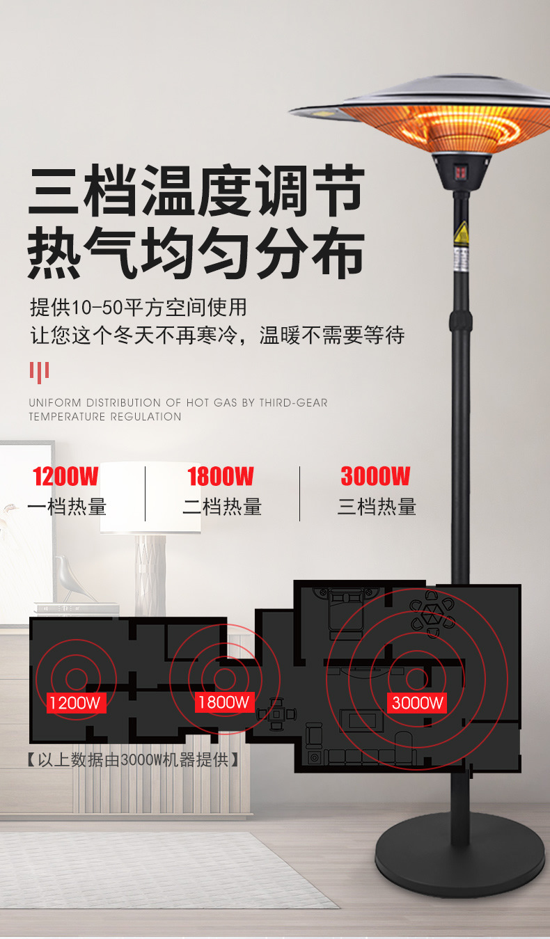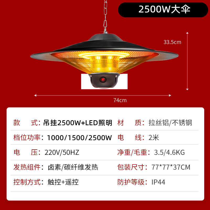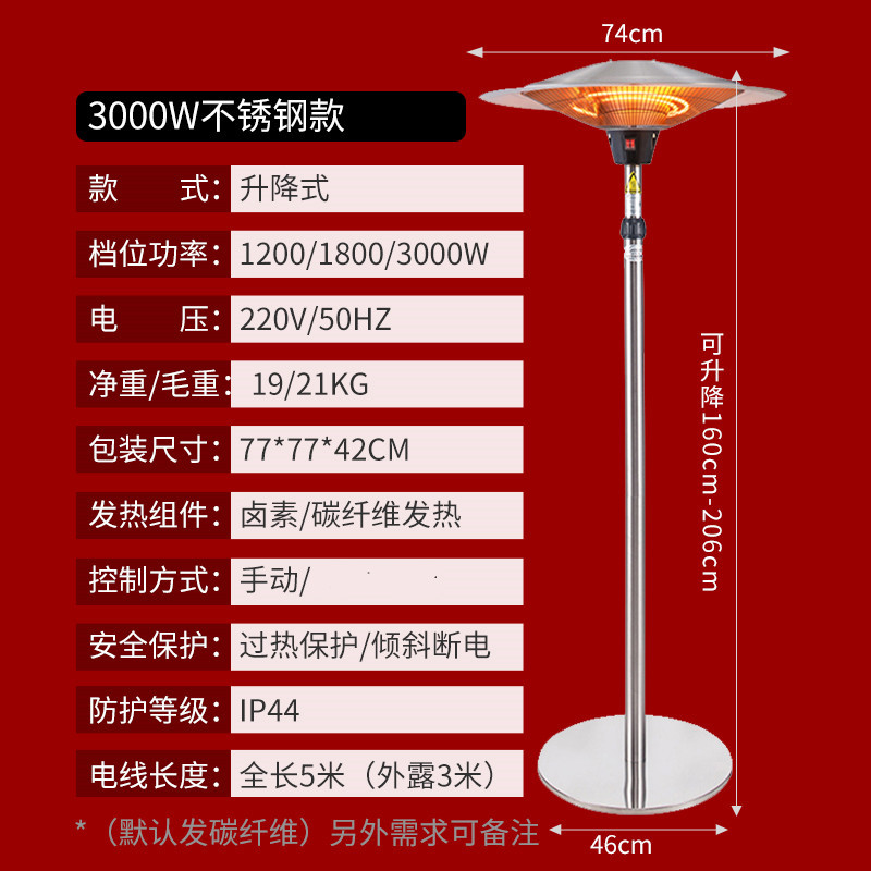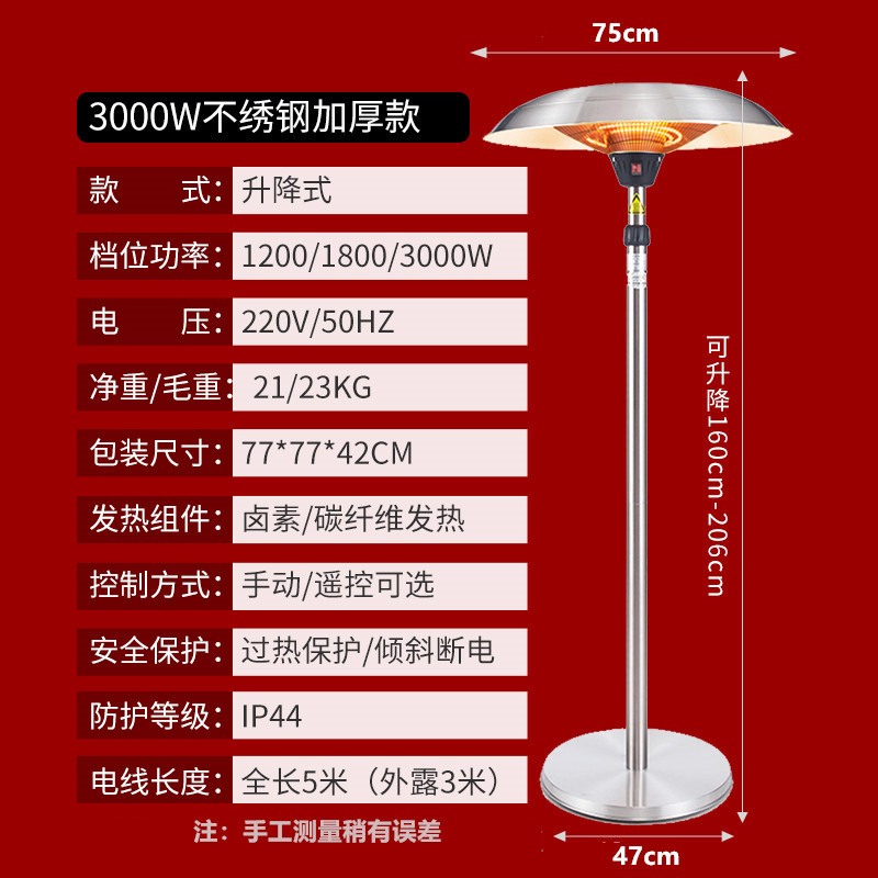 양-우산 모양의 히터 야외 전기 히터 상업용 가정용 퀵 가열 수직 야외 난방 스토브 우산 모양의 베이킹 스토브스토어 가기