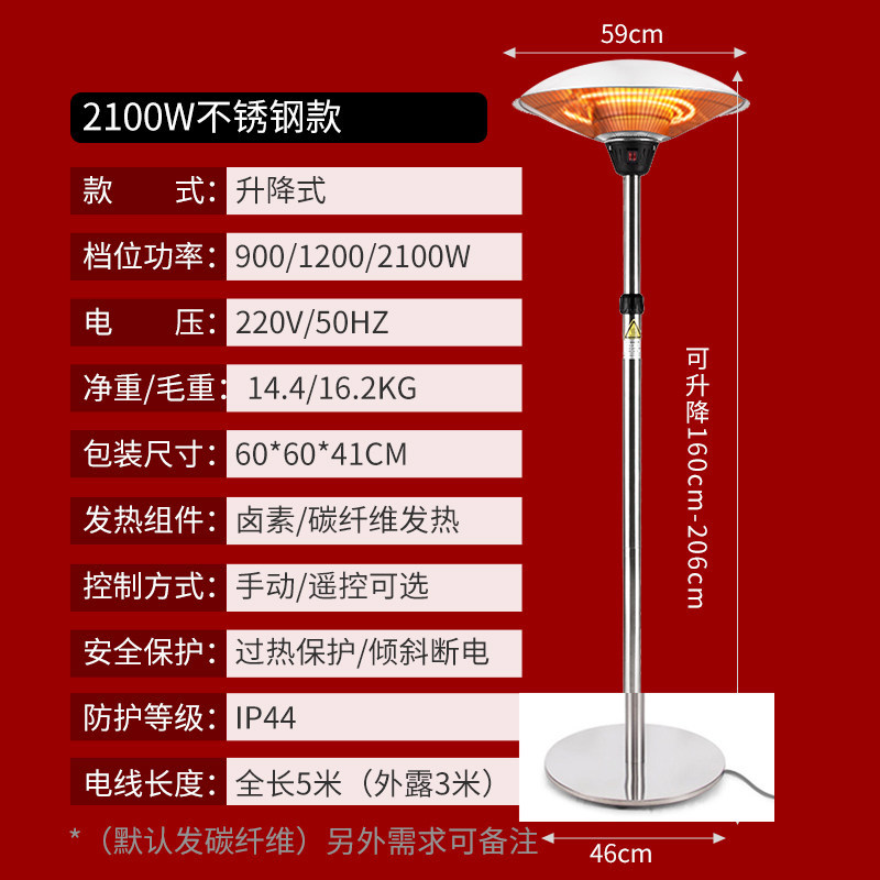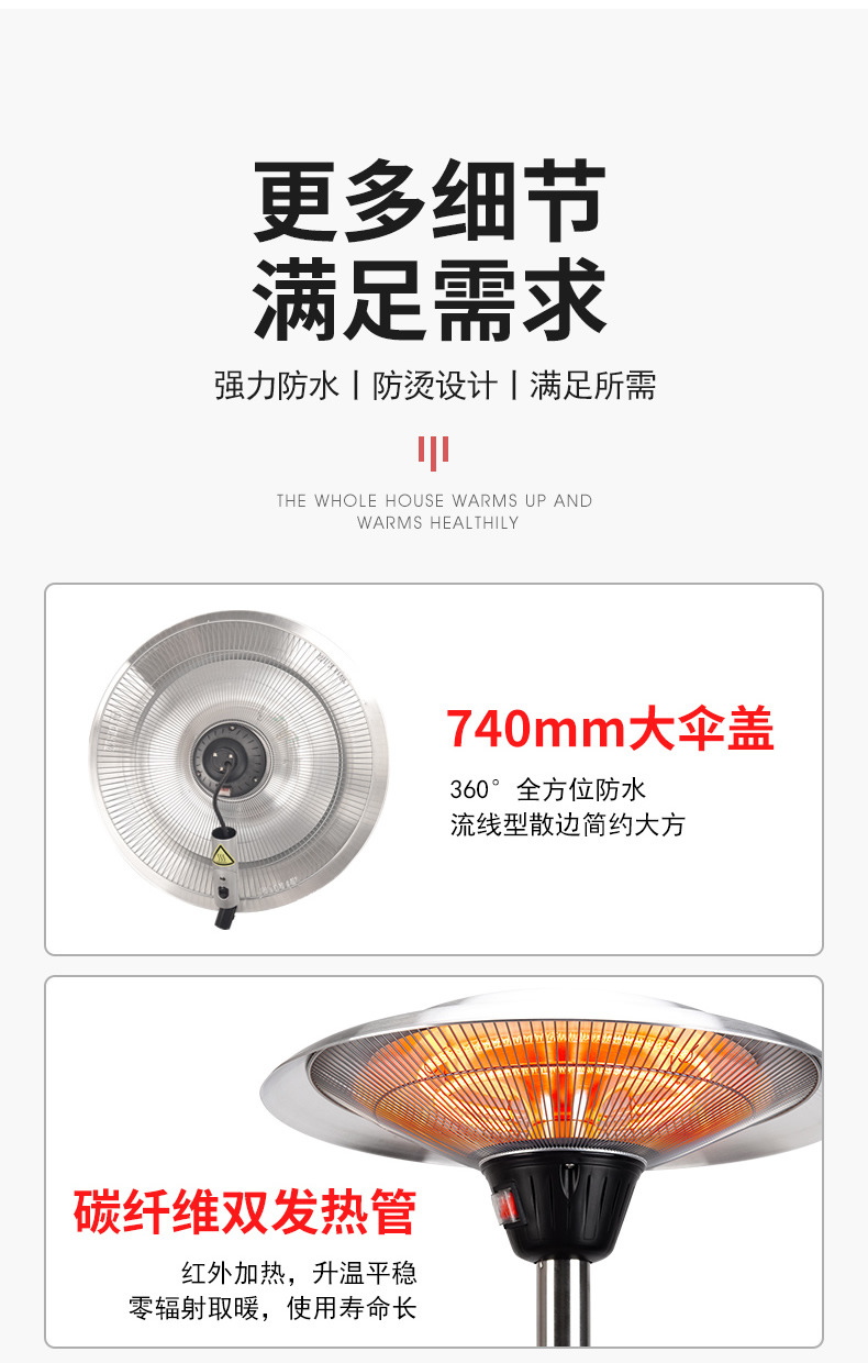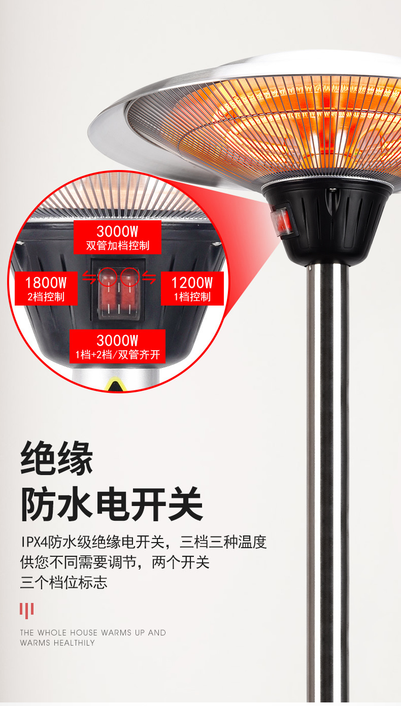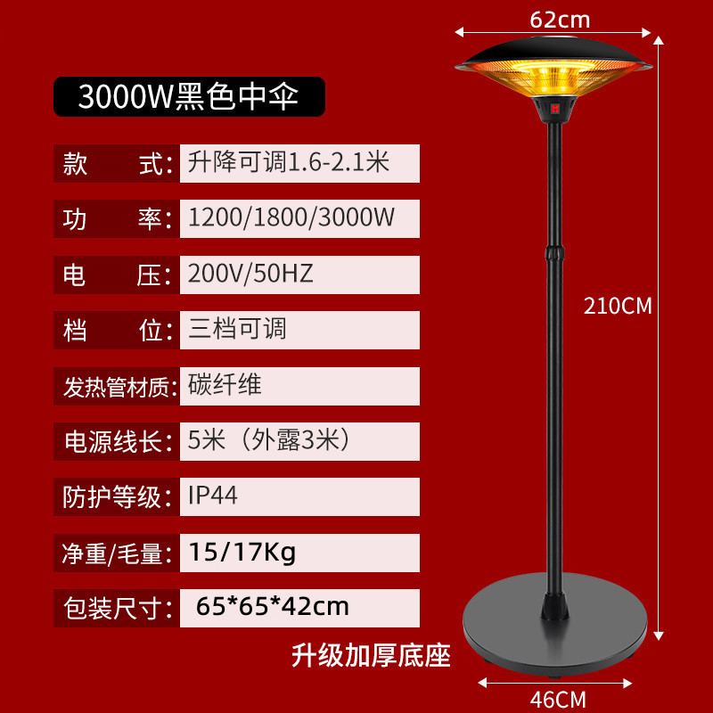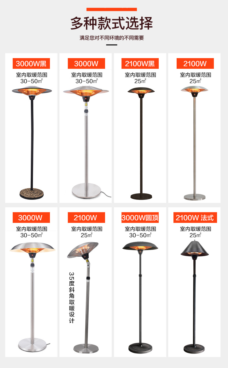 양-우산 모양의 히터 야외 전기 히터 상업용 가정용 퀵 가열 수직 야외 난방 스토브 우산 모양의 베이킹 스토브