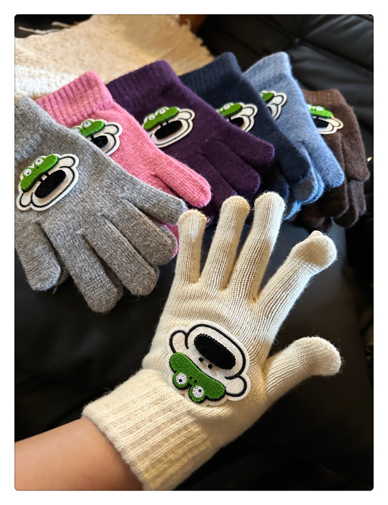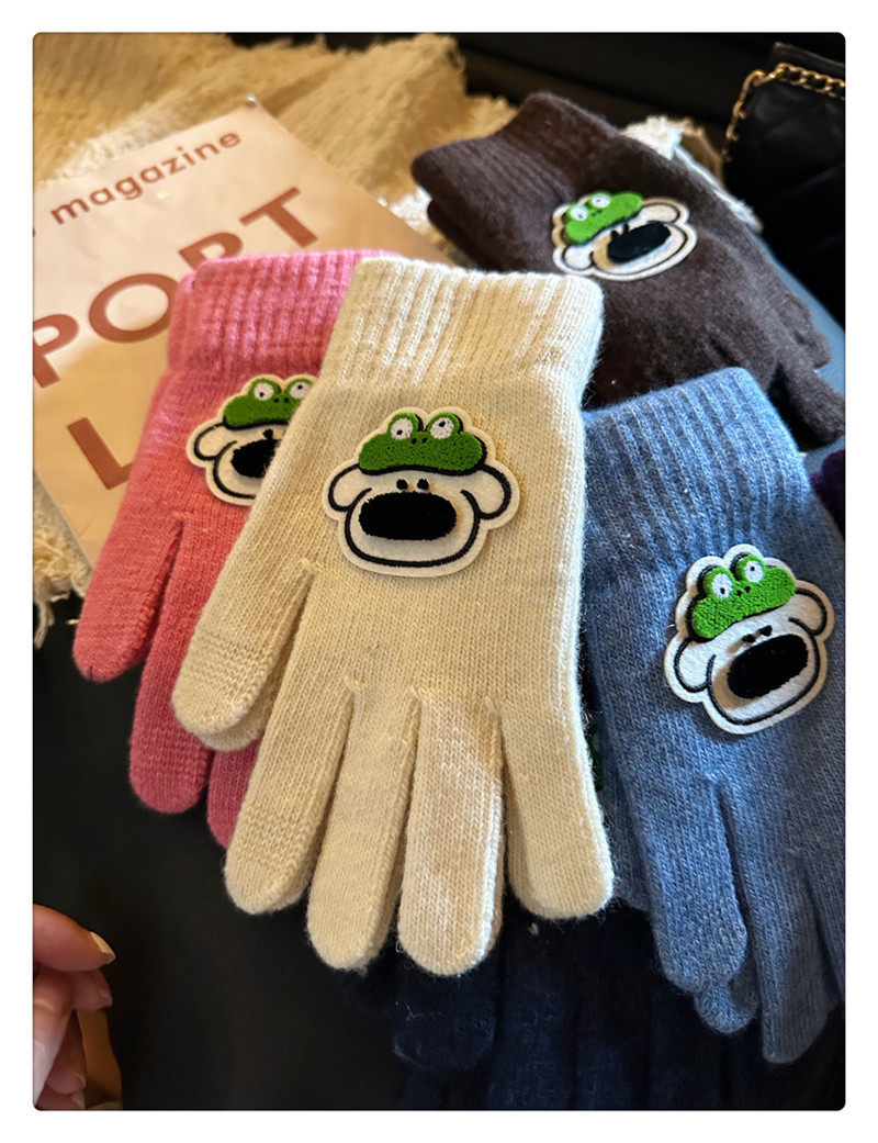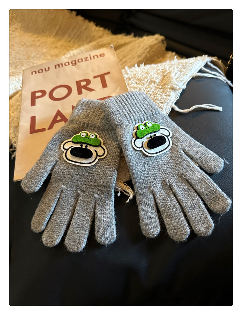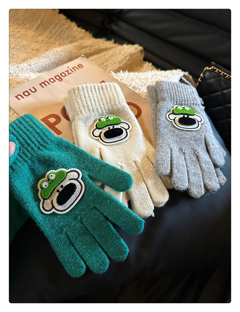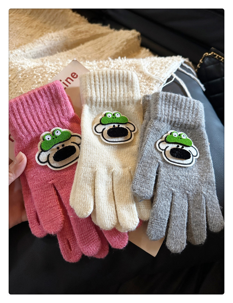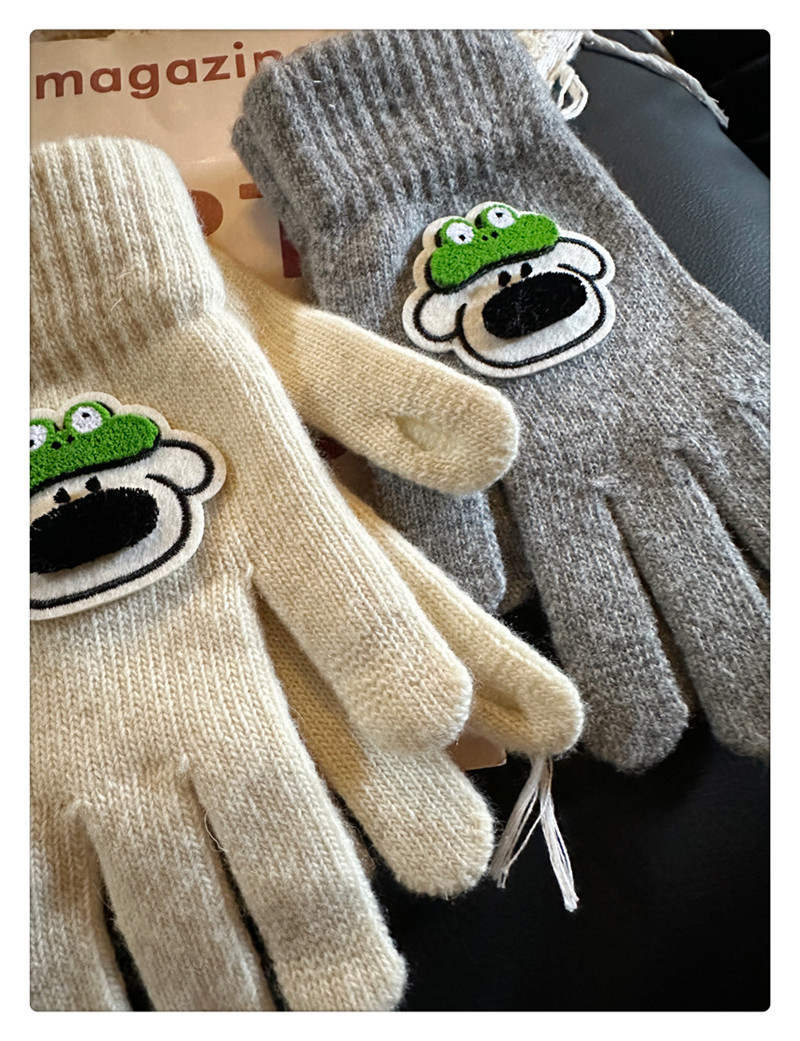 한국 스타일 귀여운 개구리 니트 장갑 여성 가을 겨울 야외 사이클링 따뜻한 전시 손가락 터치 스크린 울 장갑