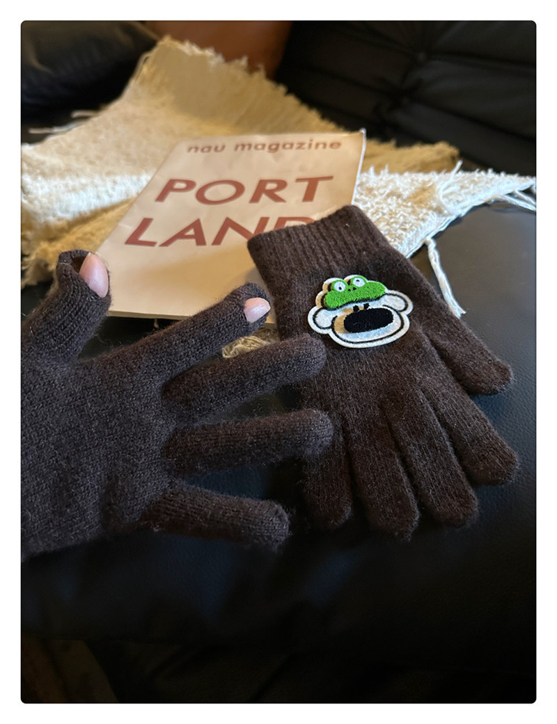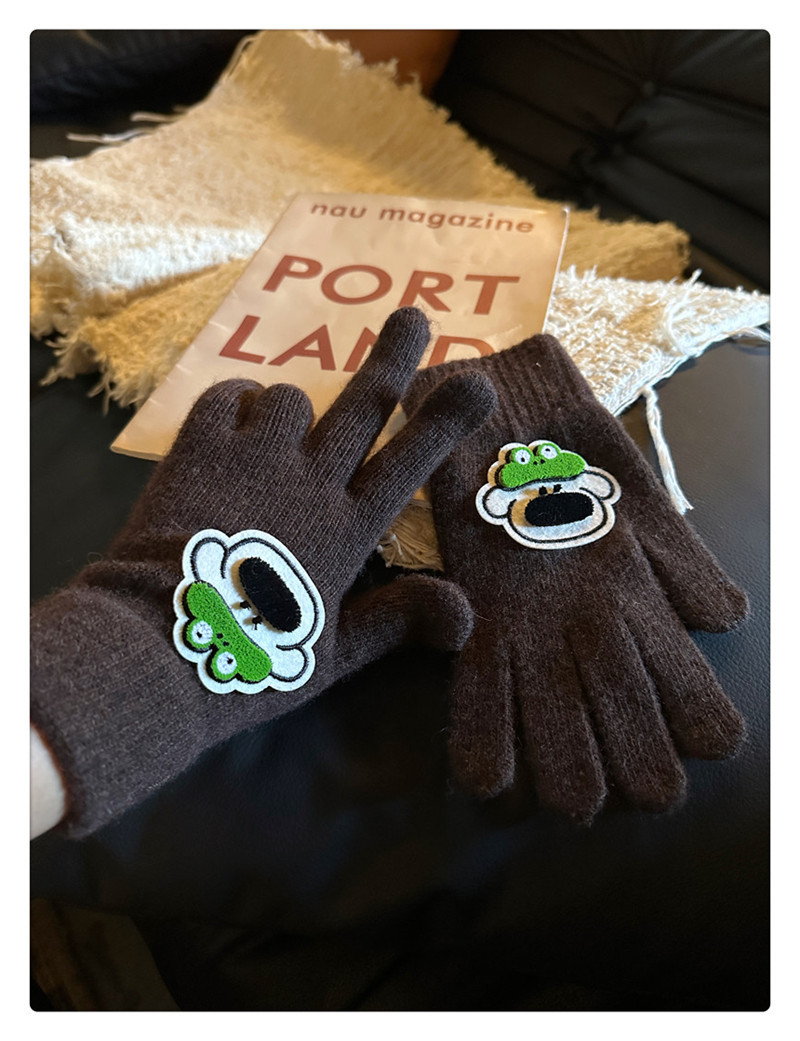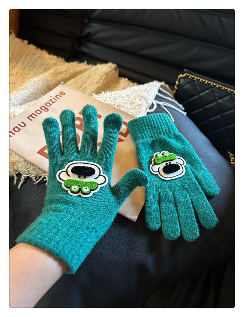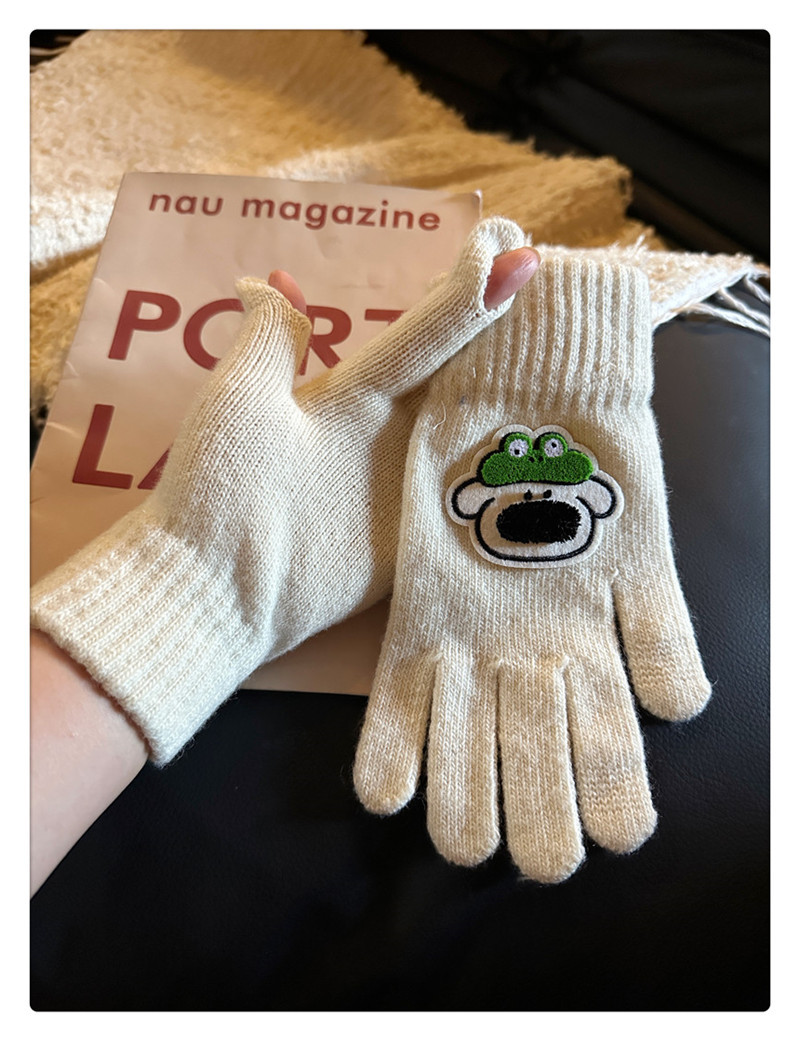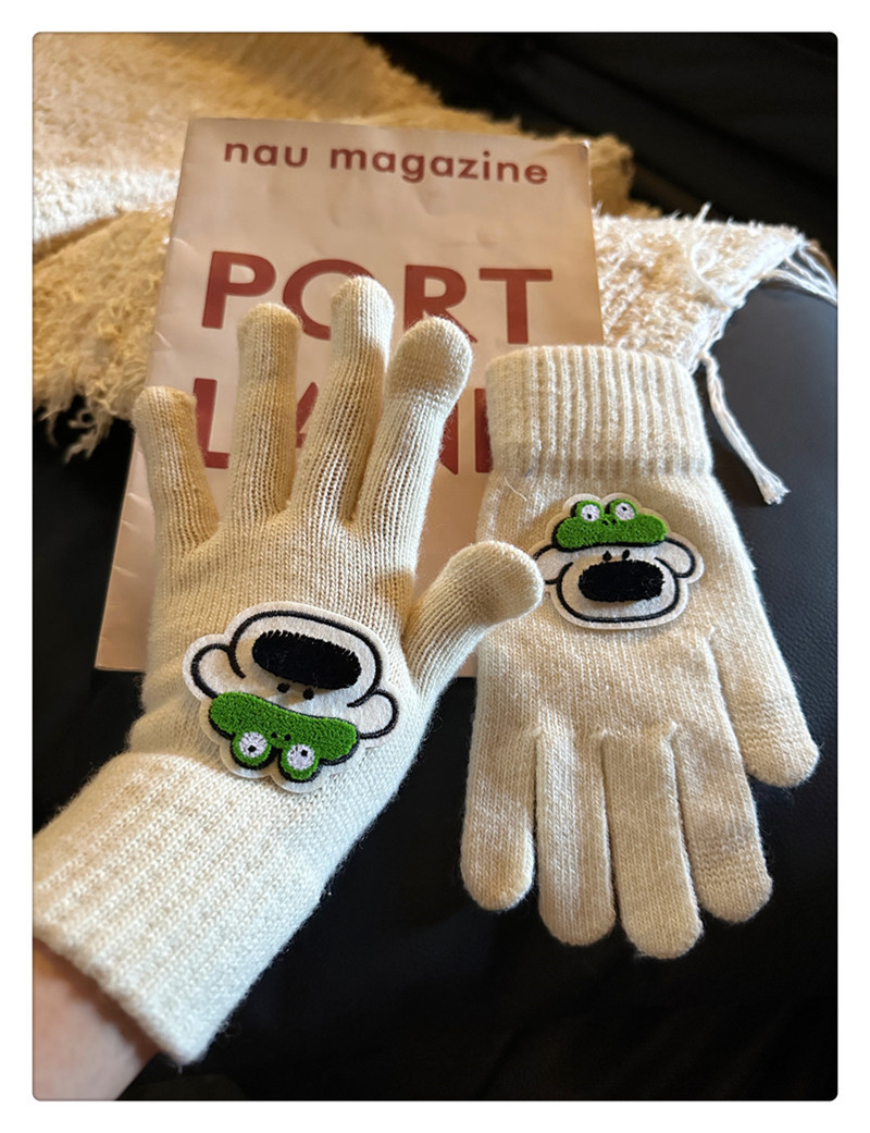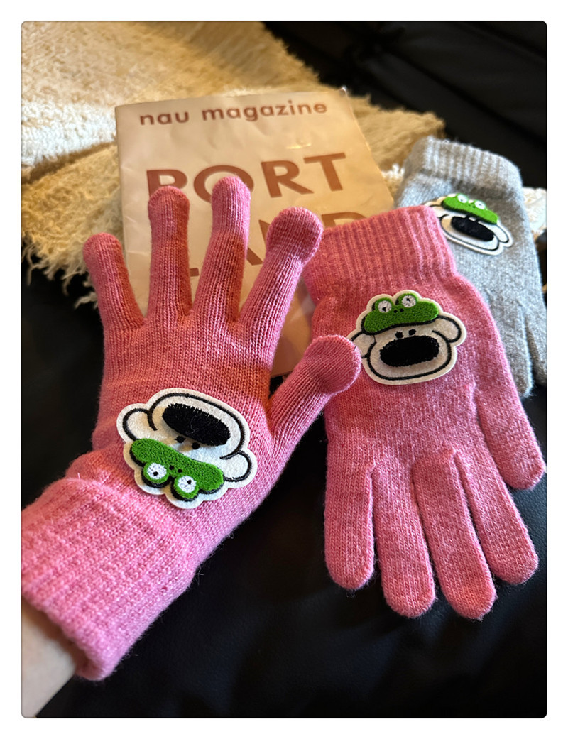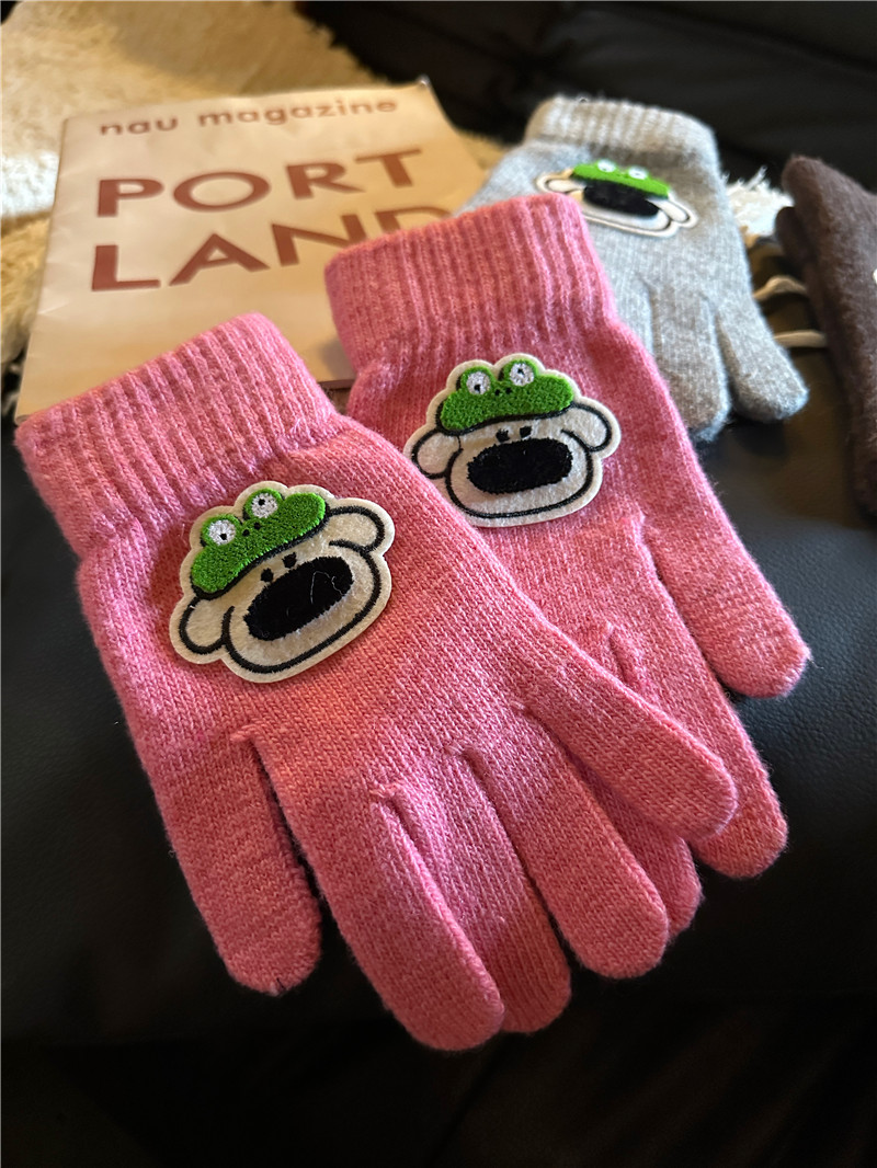 한국 스타일 귀여운 개구리 니트 장갑 여성 가을 겨울 야외 사이클링 따뜻한 전시 손가락 터치 스크린 울 장갑