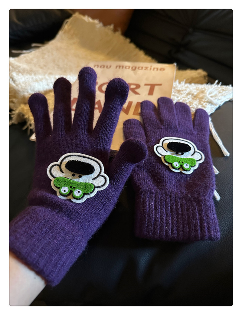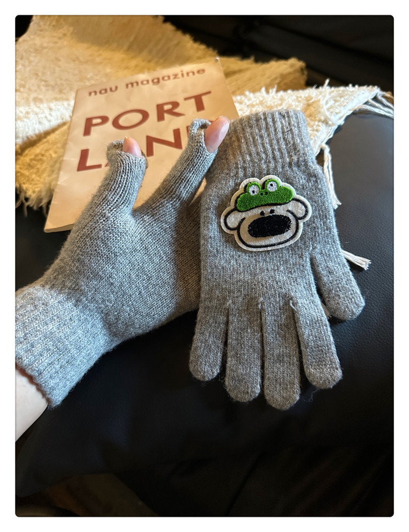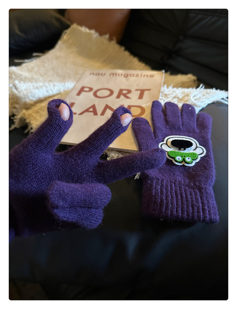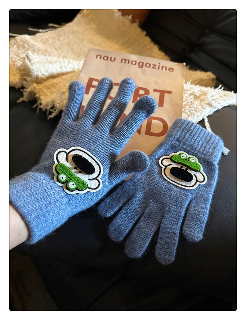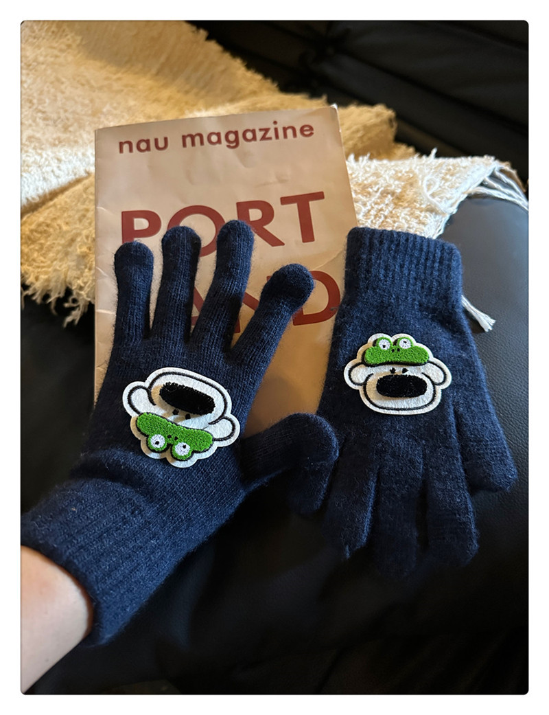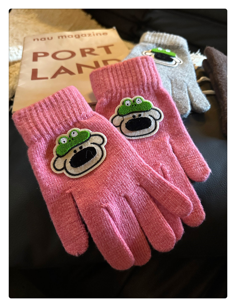 한국 스타일 귀여운 개구리 니트 장갑 여성 가을 겨울 야외 사이클링 따뜻한 전시 손가락 터치 스크린 울 장갑