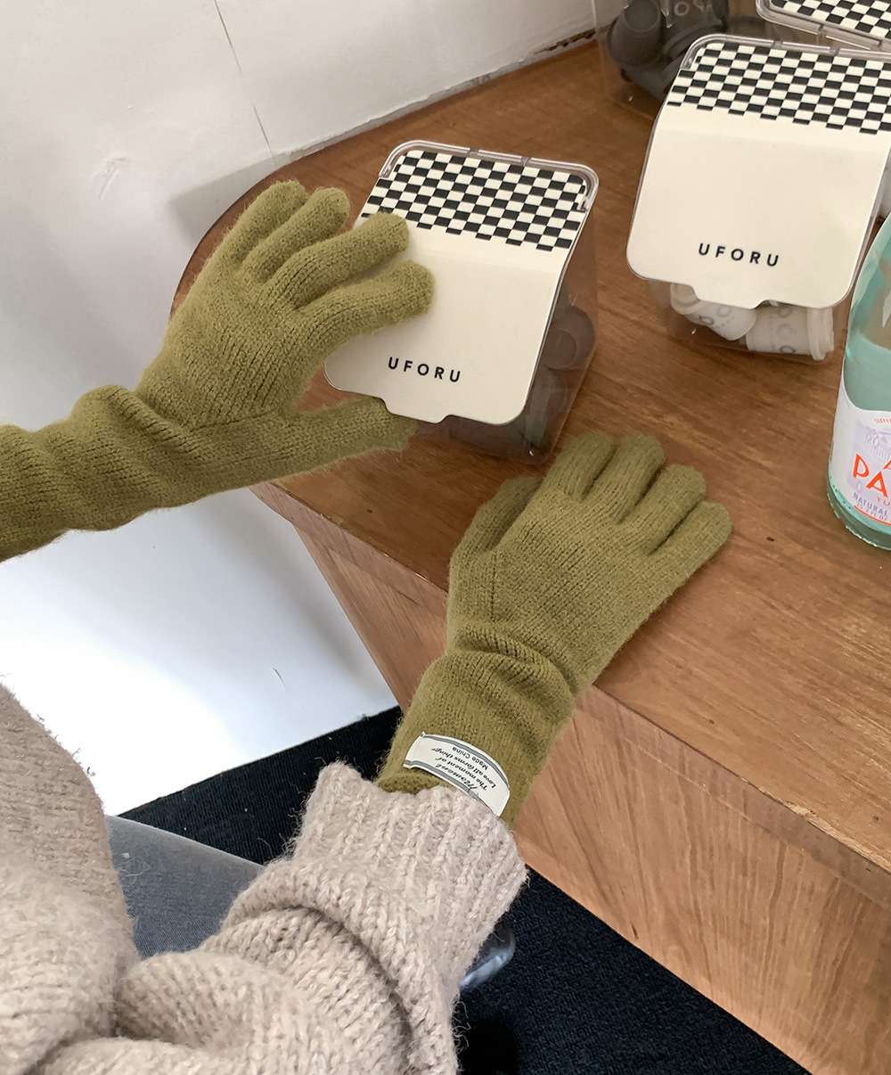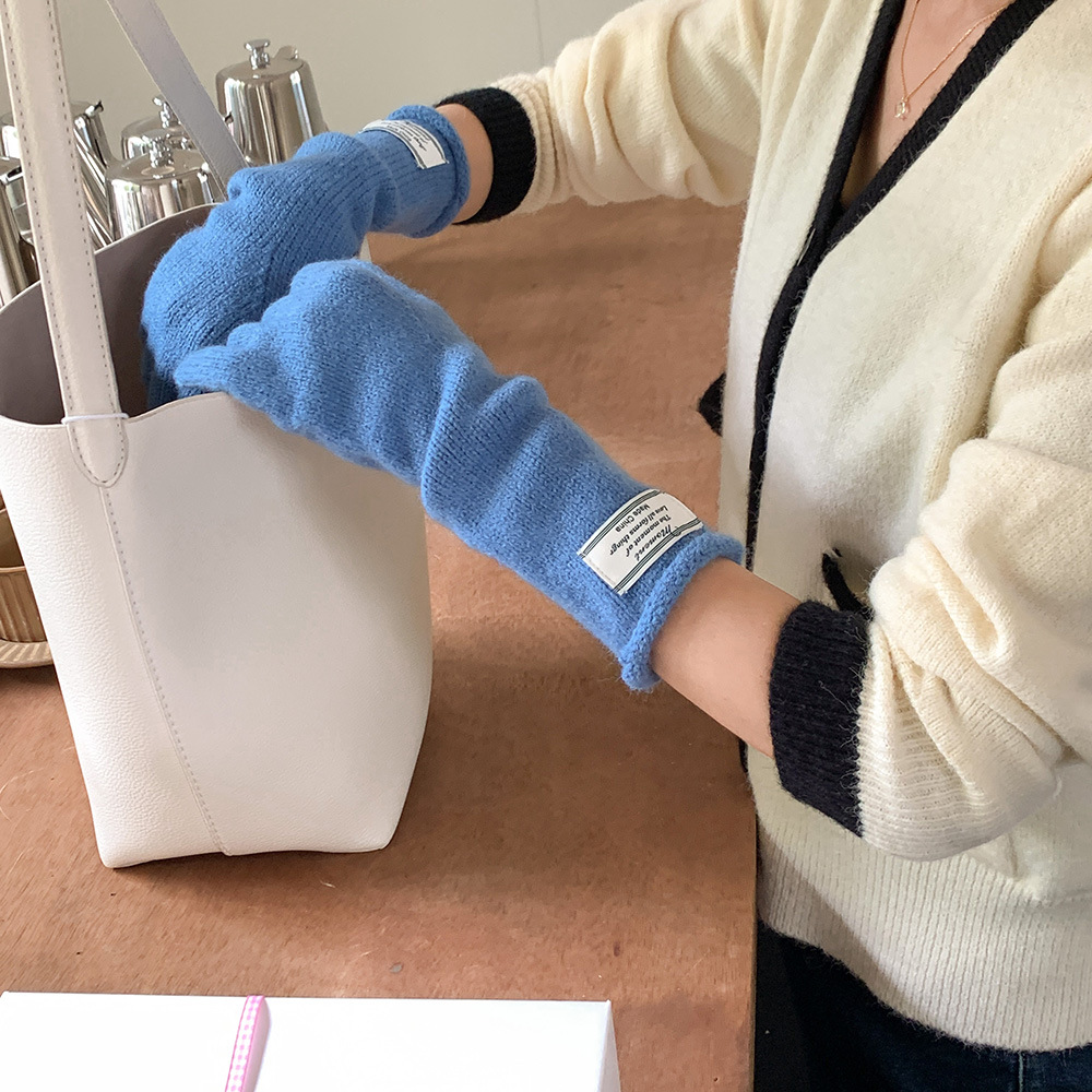 한국 23 새로운 긴 손목 니트 장갑 여성의 겨울 솔리드 컬러 사진 학생 Leakage 손가락 터치 스크린을 따뜻하게 유지하기 위해 휴대 전화로 재생합니다.스토어 가기