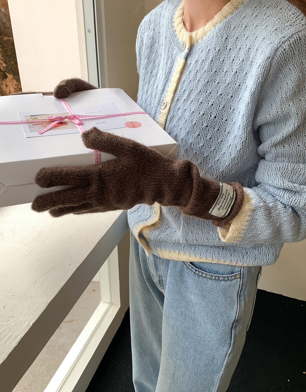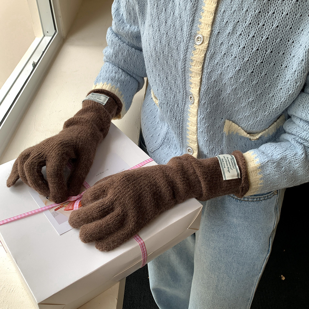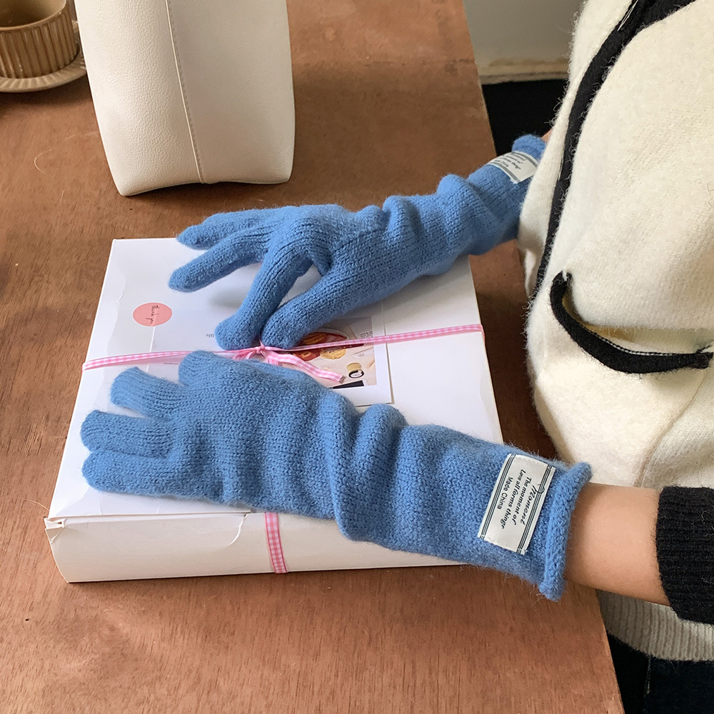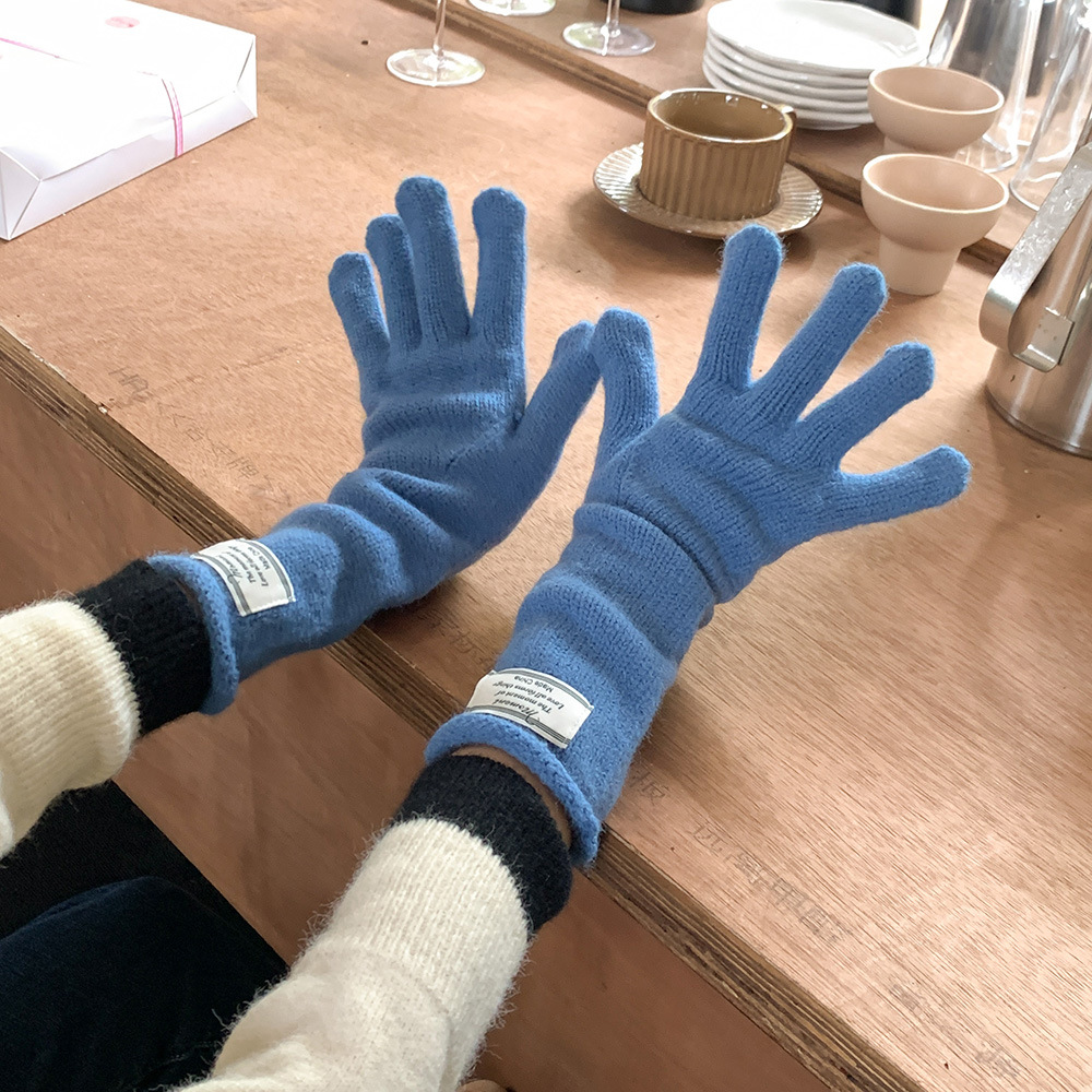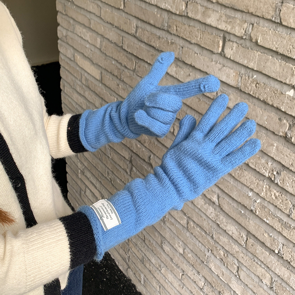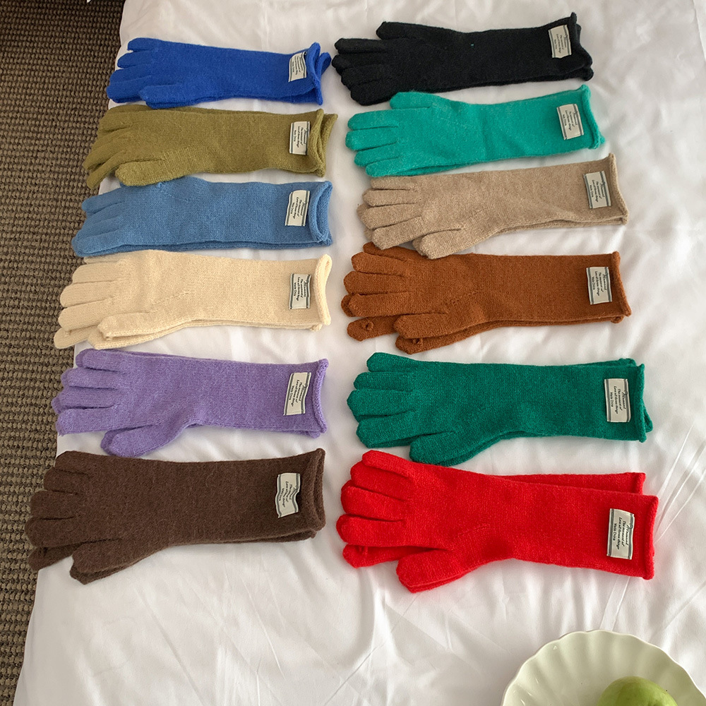 한국 23 새로운 긴 손목 니트 장갑 여성의 겨울 솔리드 컬러 사진 학생 Leakage 손가락 터치 스크린을 따뜻하게 유지하기 위해 휴대 전화로 재생합니다.