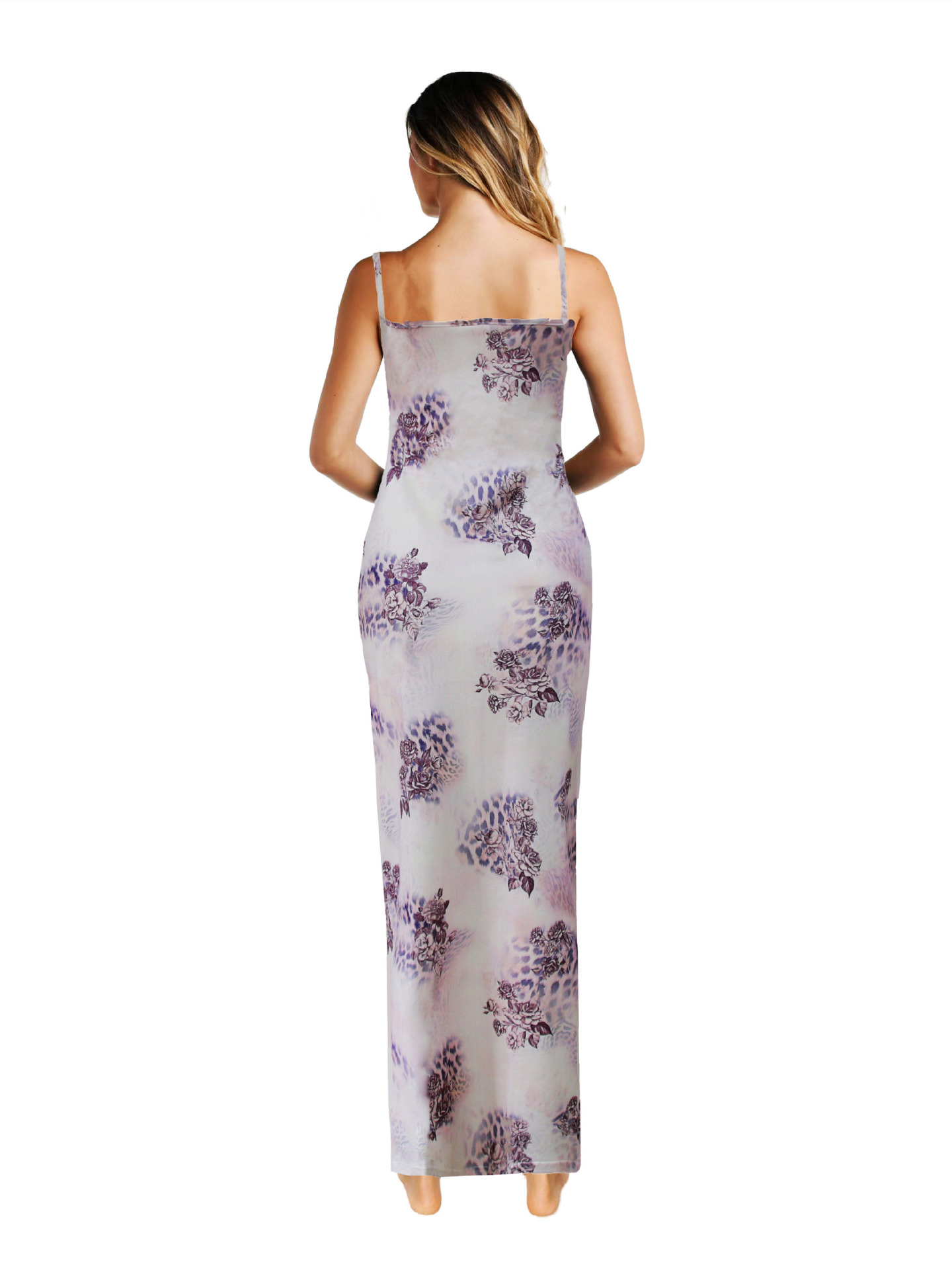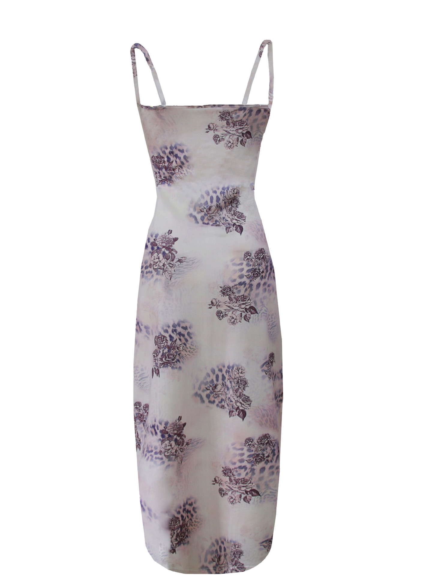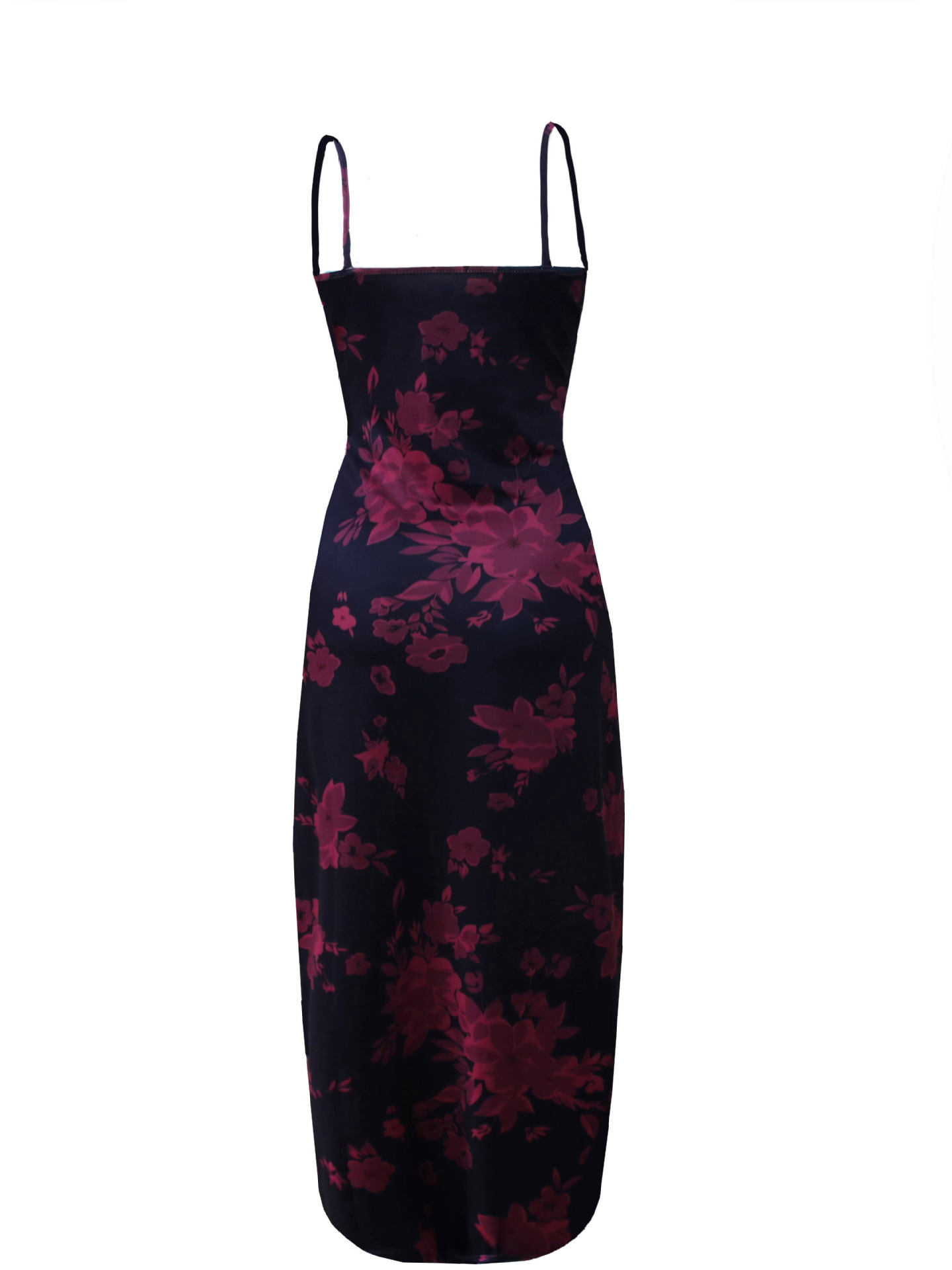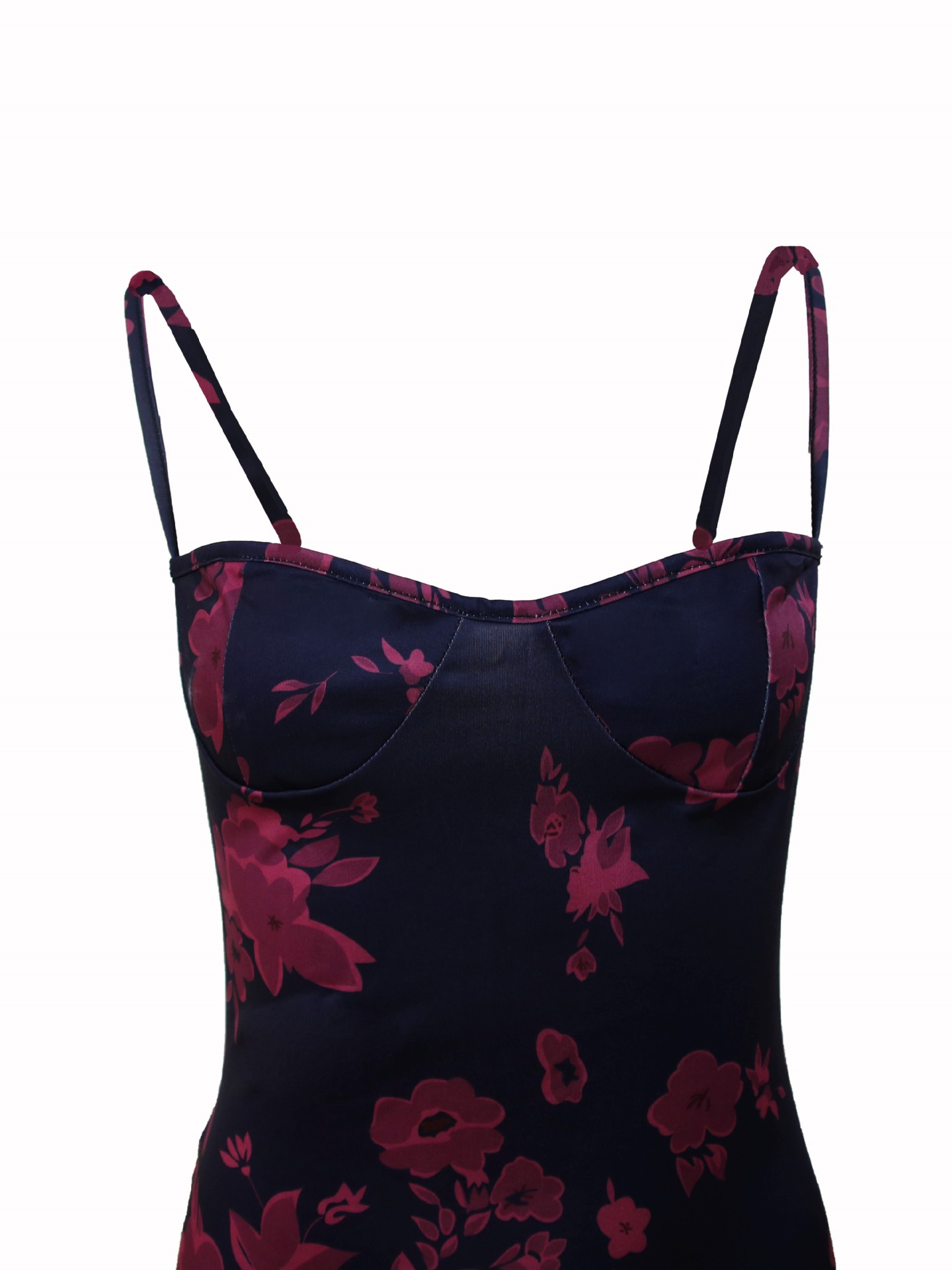 재고 국경 간 유럽과 미국식 여성의 우아한 슬림 핏 허리 원피스 스트랩 가슴 공개 꽃 인쇄 긴 원피스스토어 가기