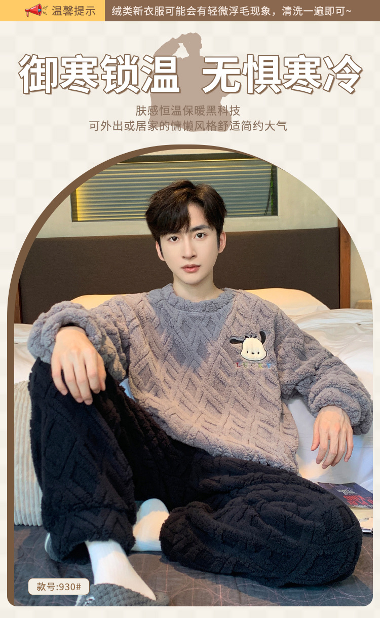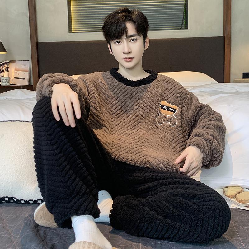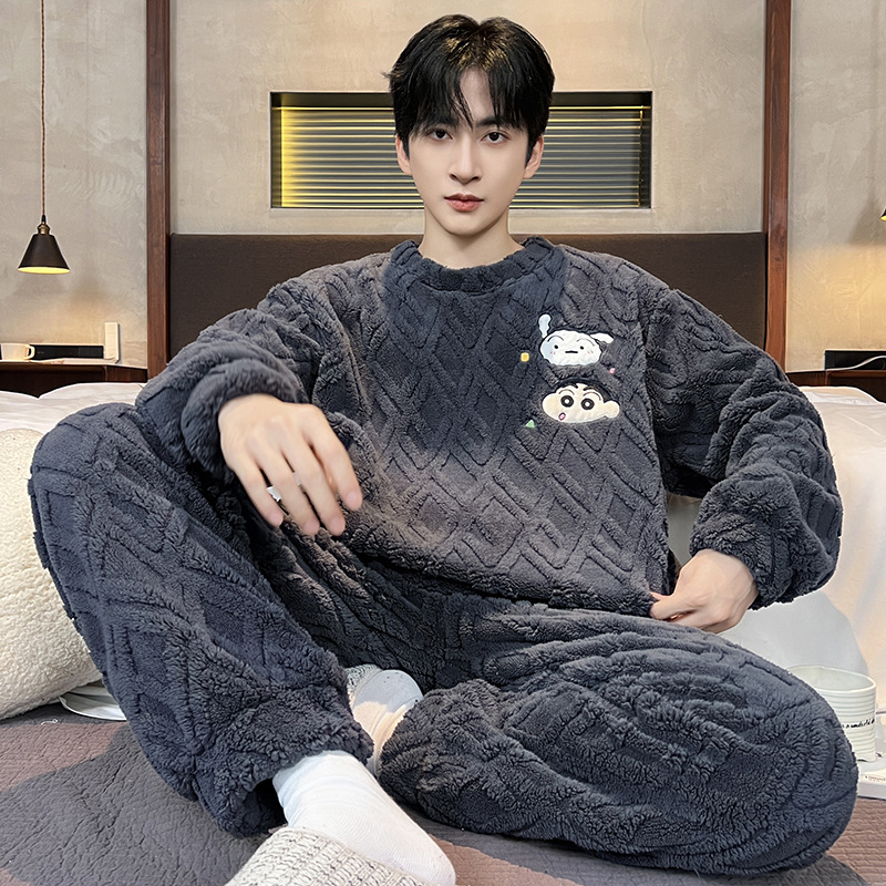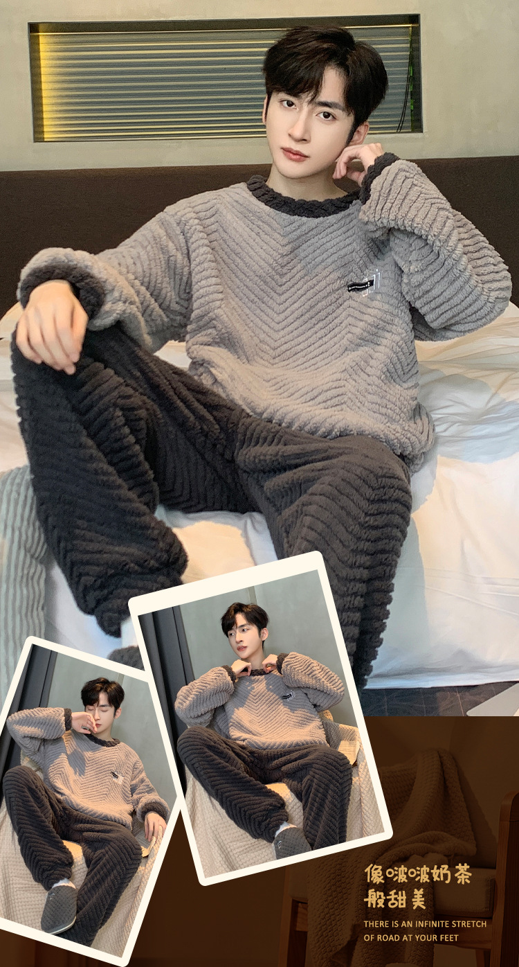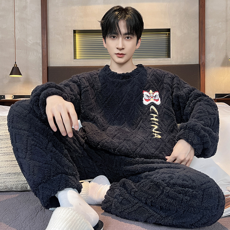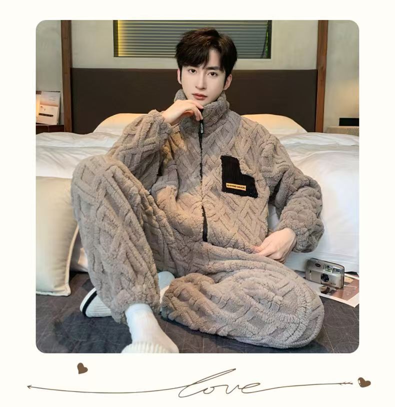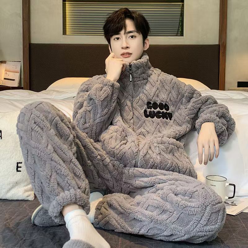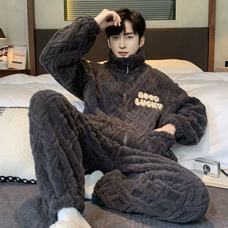 국경 간 잠옷 남성 가을과 겨울 새로운 지퍼 두꺼운 긴 소매 산호 양털 홈 의류 소스 공장 기모 플러스