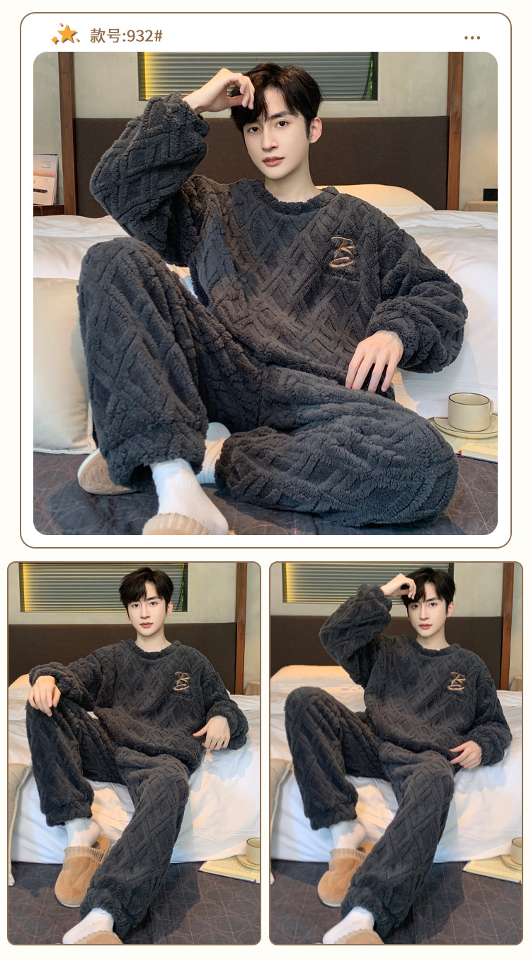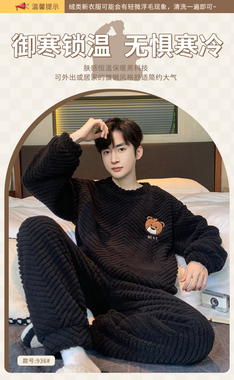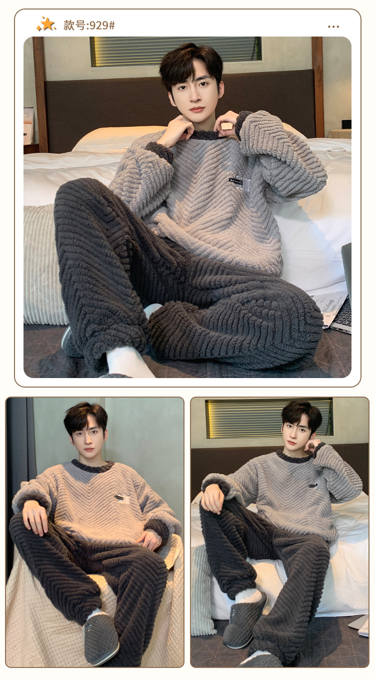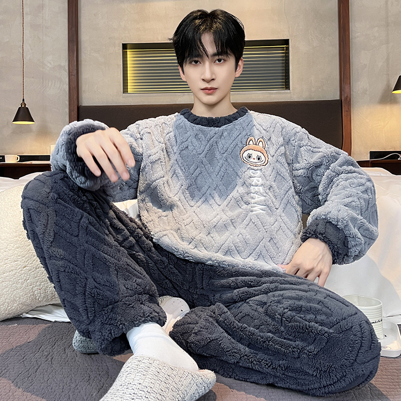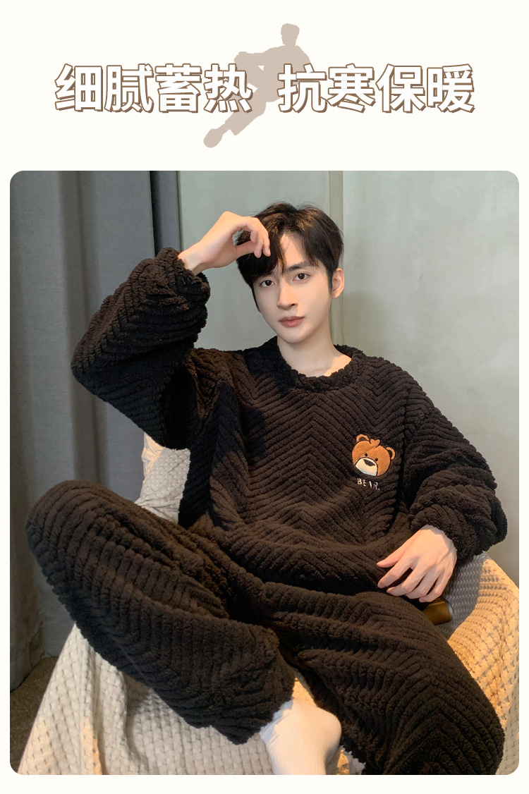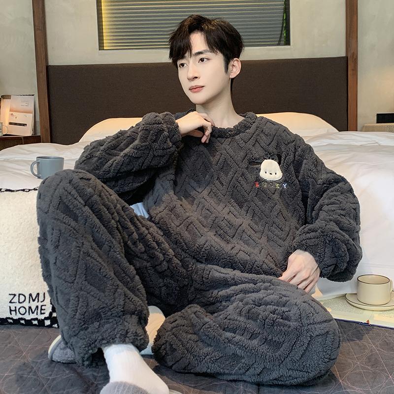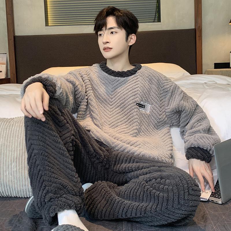 국경 간 잠옷 남성 가을과 겨울 새로운 지퍼 두꺼운 긴 소매 산호 양털 홈 의류 소스 공장 기모 플러스
