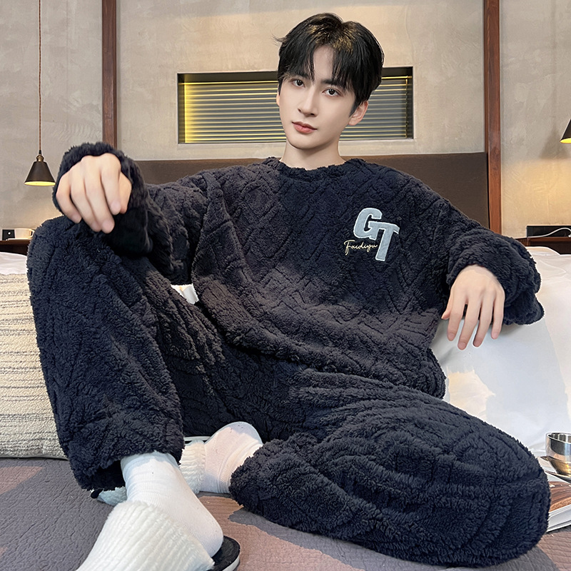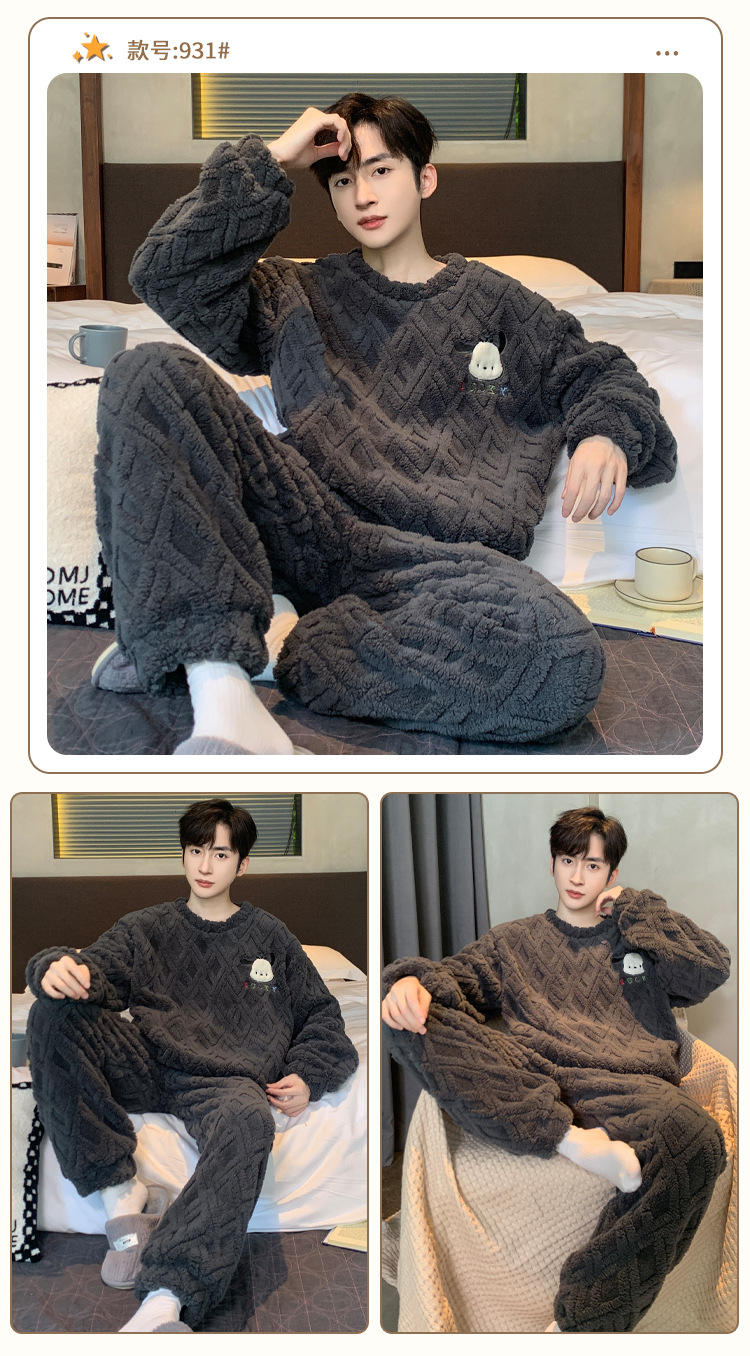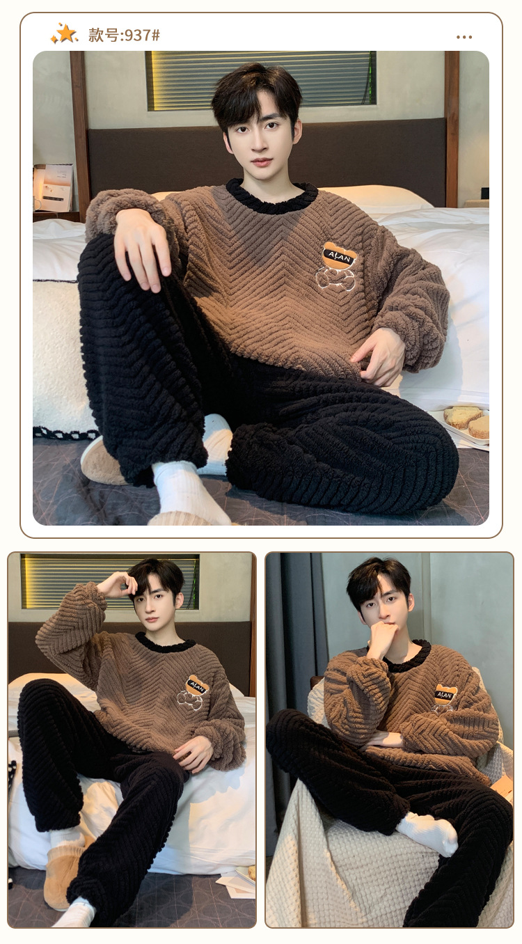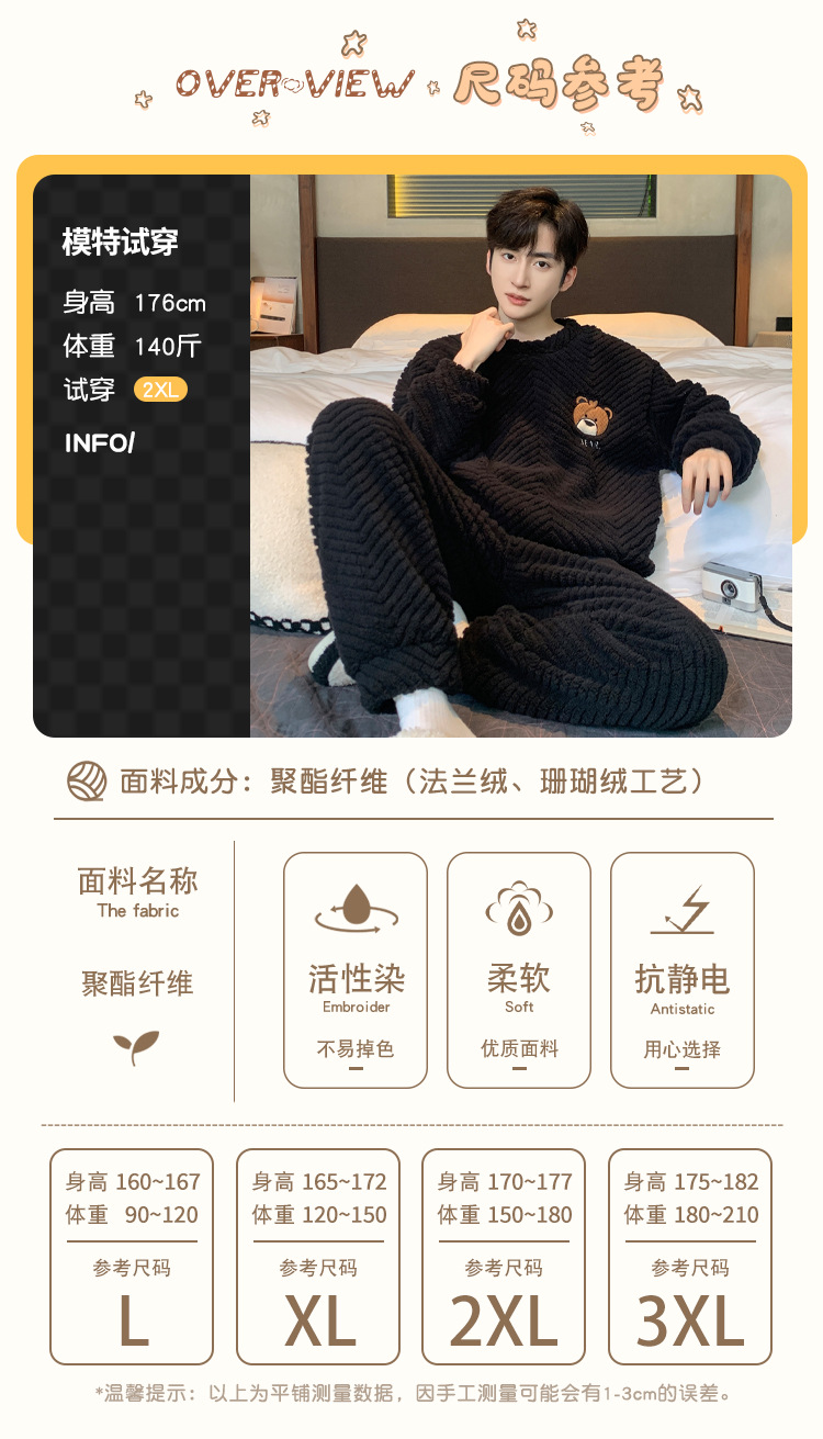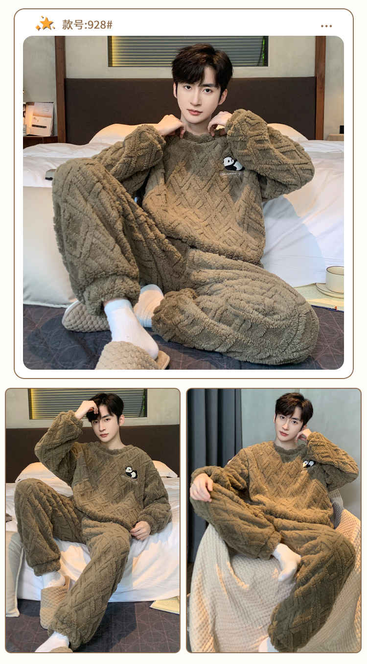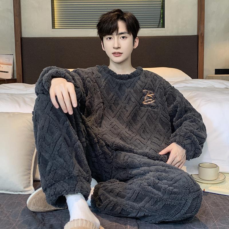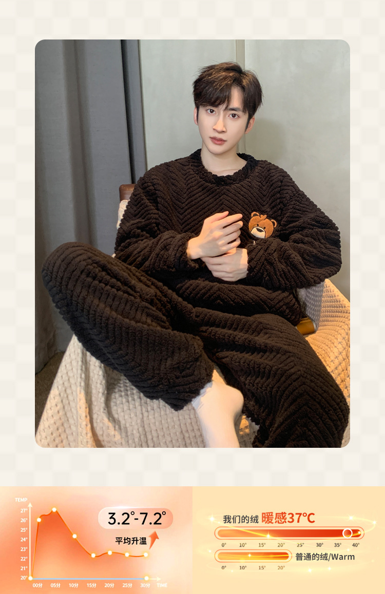 국경 간 잠옷 남성 가을과 겨울 새로운 지퍼 두꺼운 긴 소매 산호 양털 홈 의류 소스 공장 기모 플러스