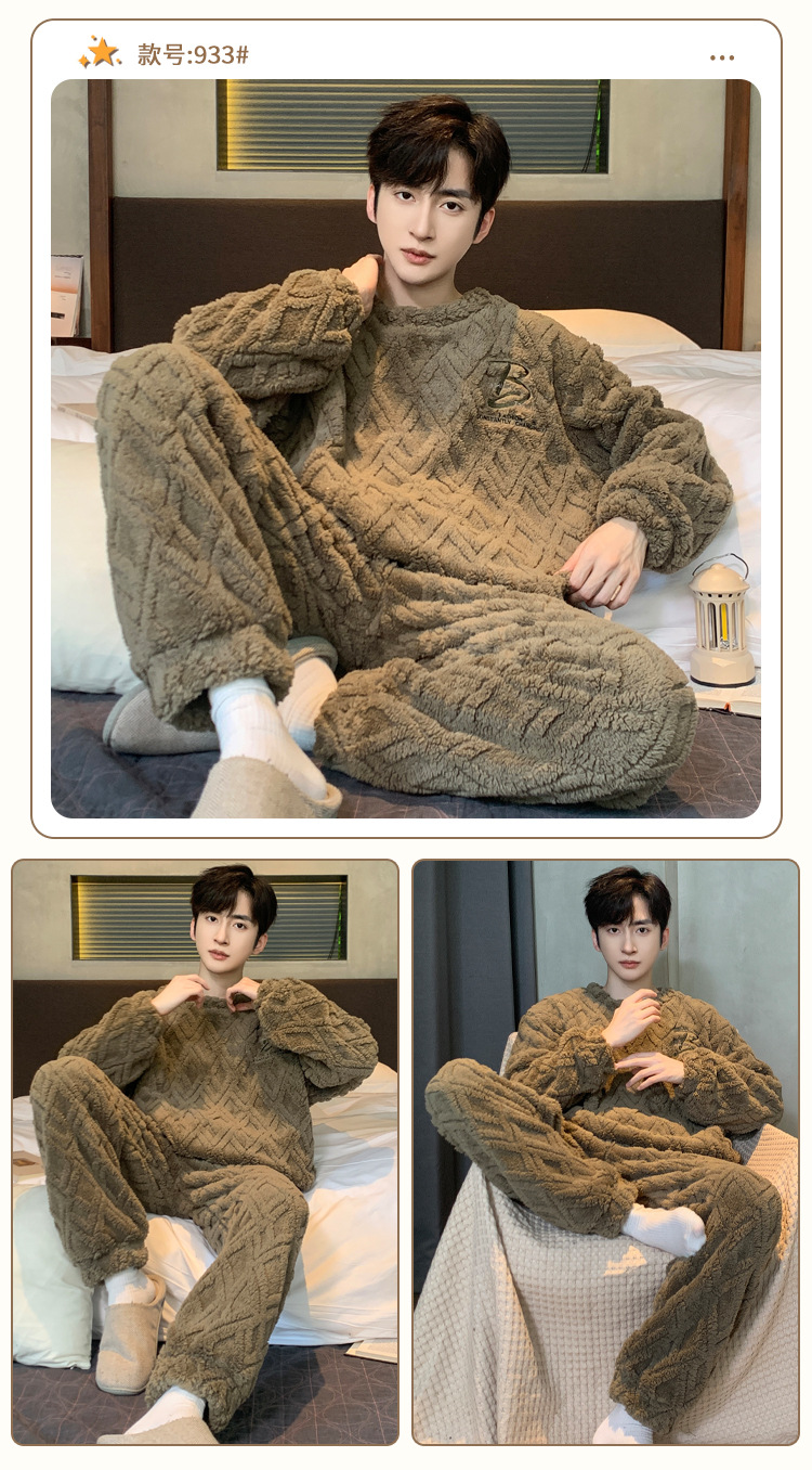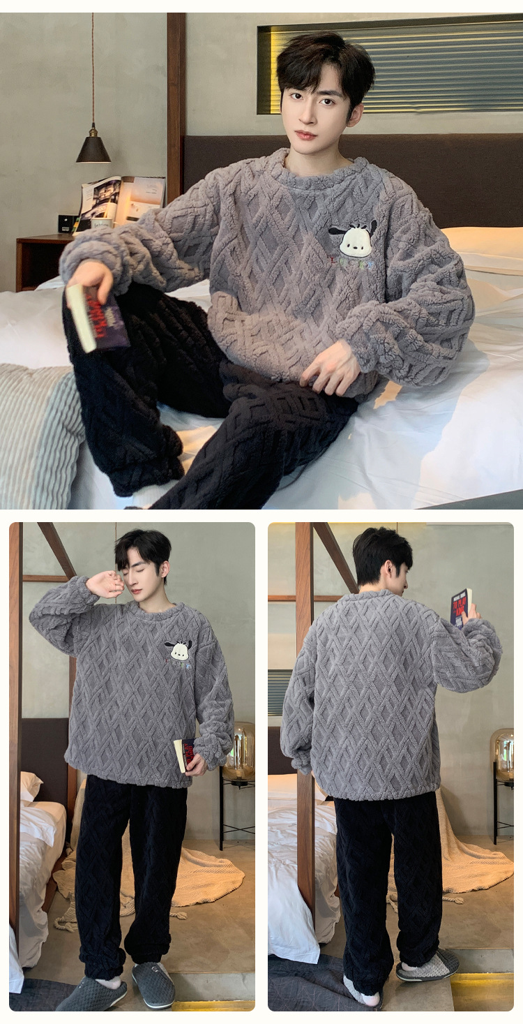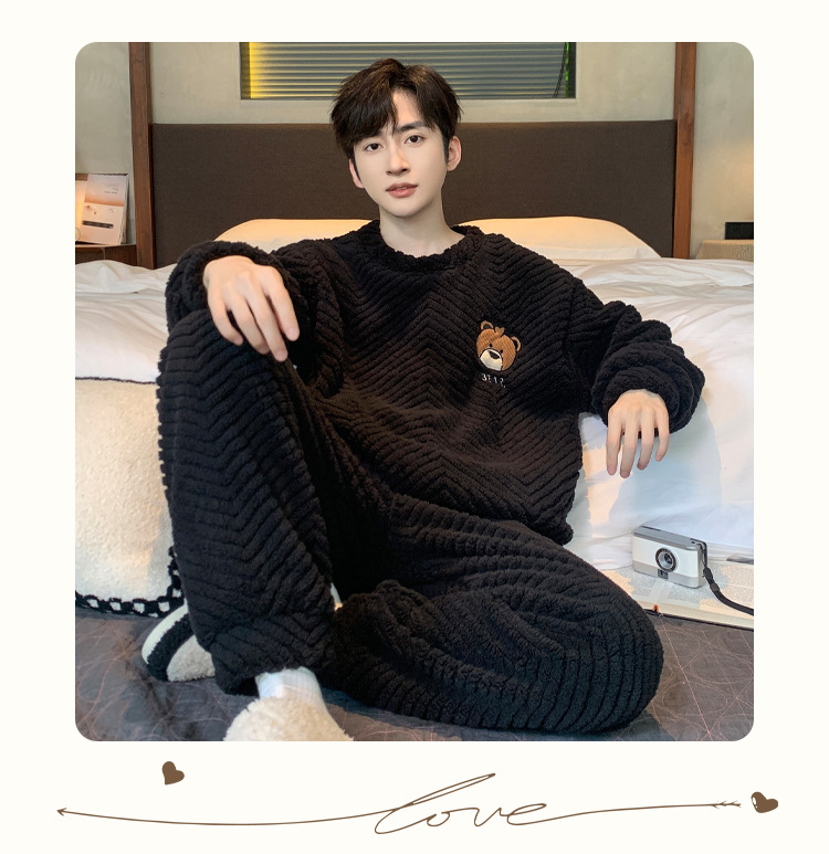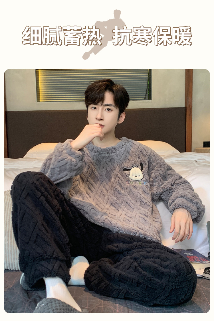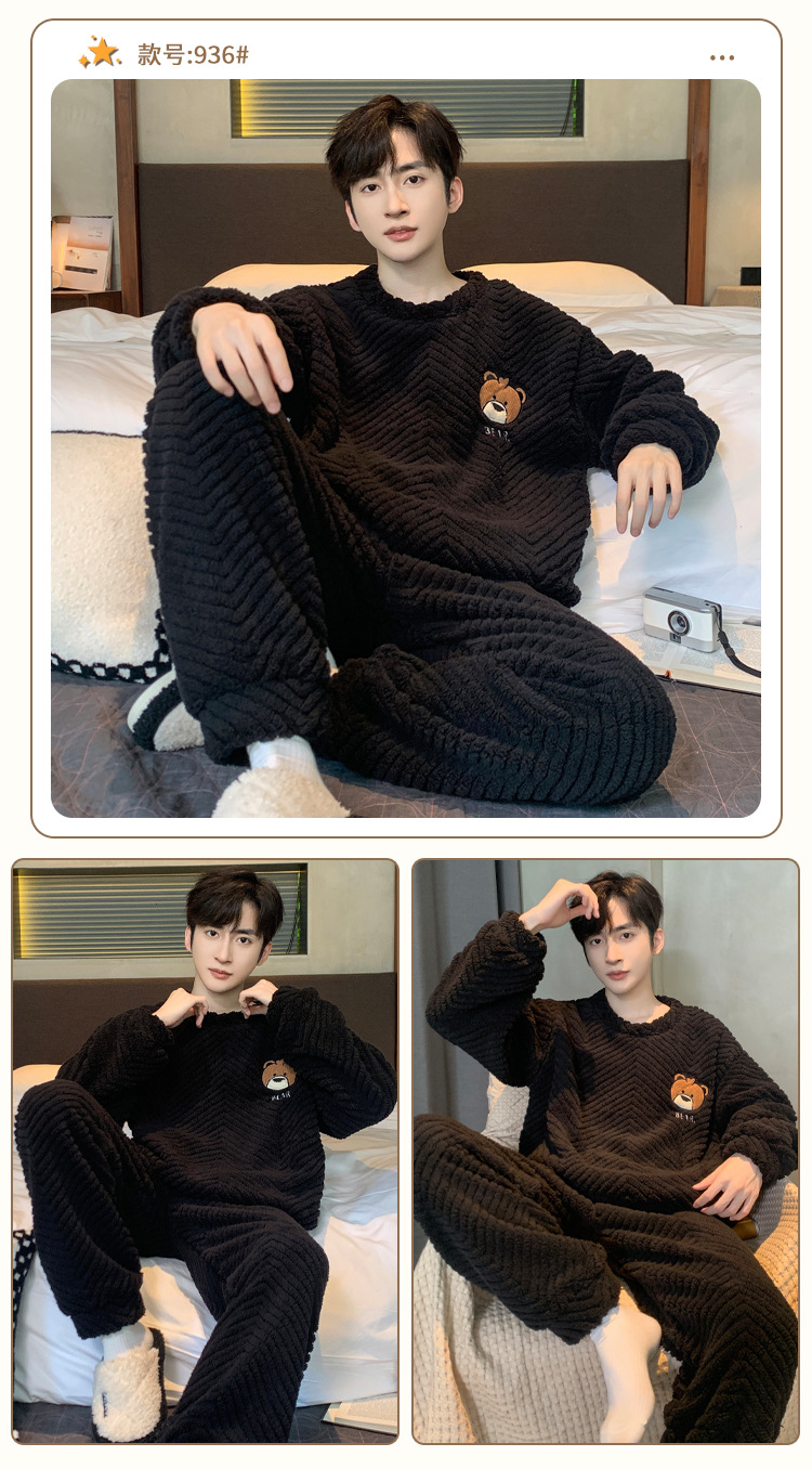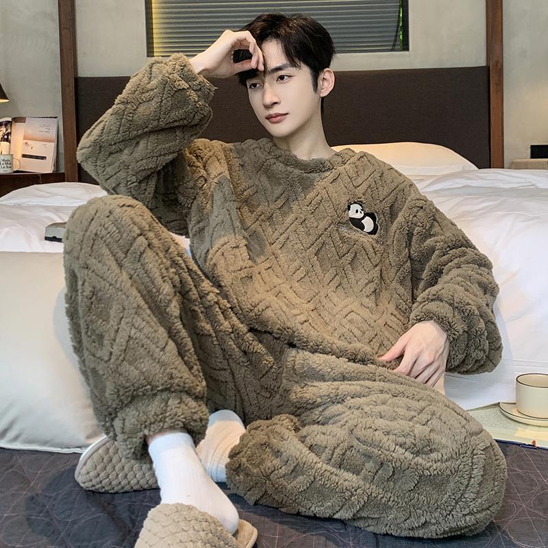 국경 간 잠옷 남성 가을과 겨울 새로운 지퍼 두꺼운 긴 소매 산호 양털 홈 의류 소스 공장 기모 플러스