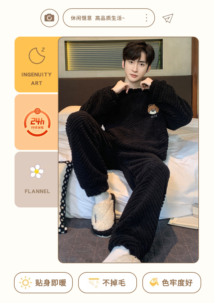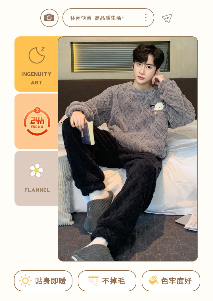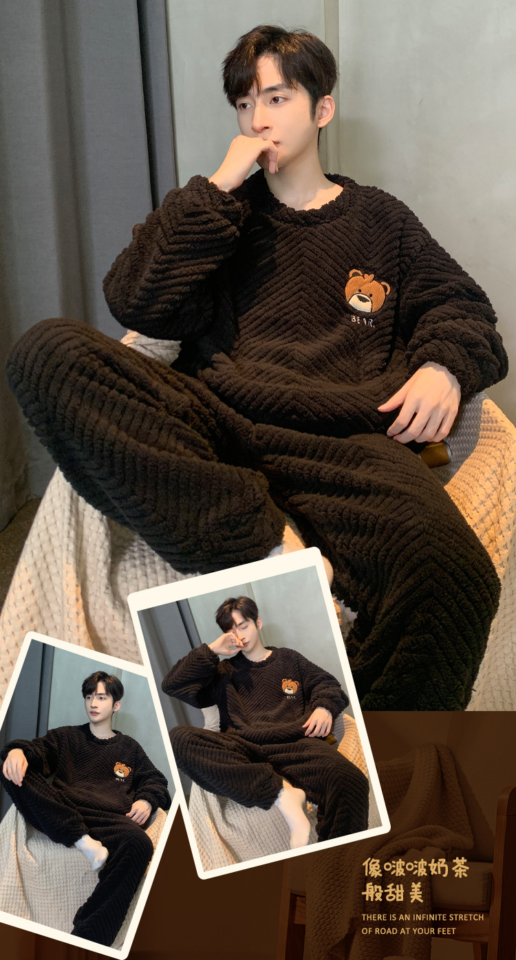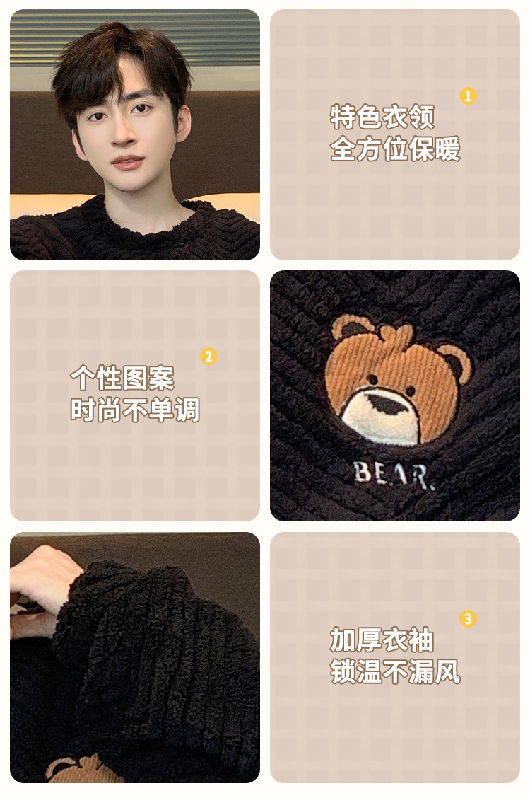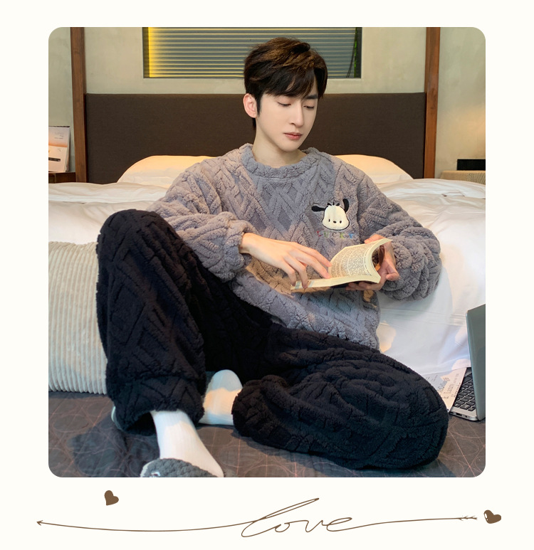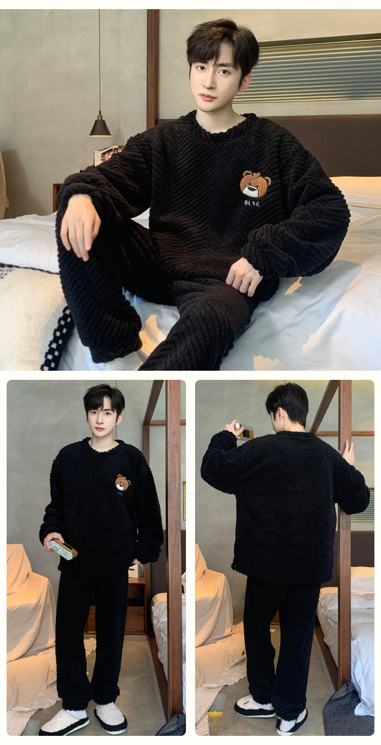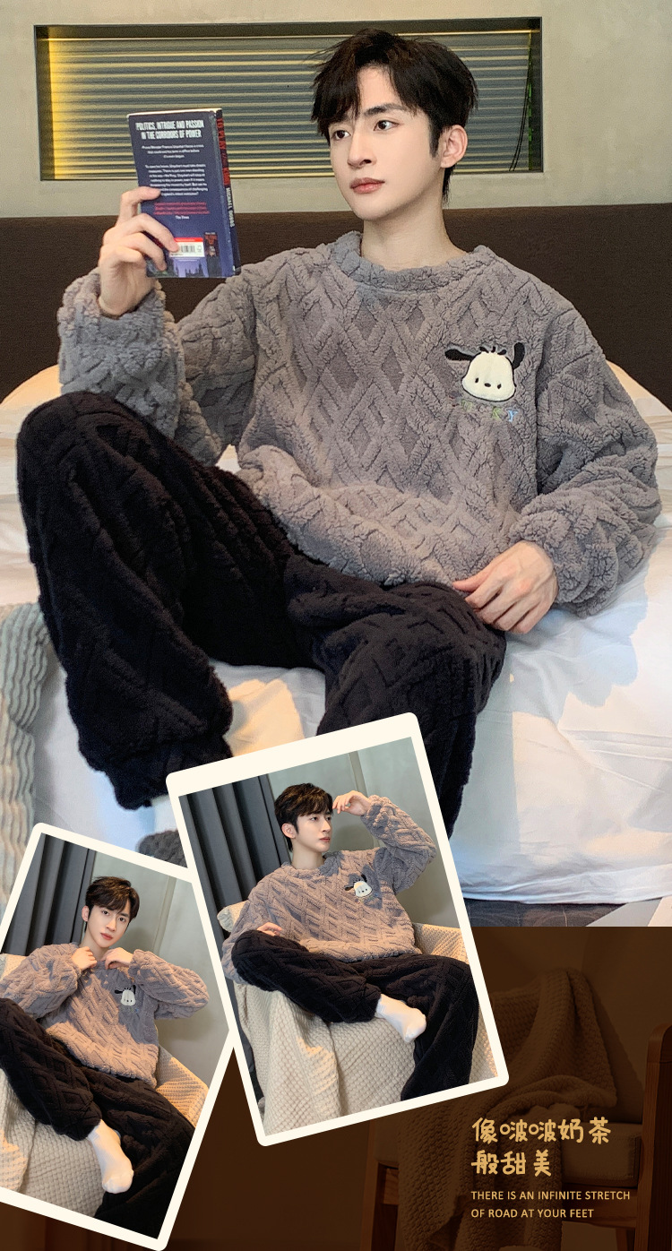국경 간 잠옷 남성 가을과 겨울 새로운 지퍼 두꺼운 긴 소매 산호 양털 홈 의류 소스 공장 기모 플러스
