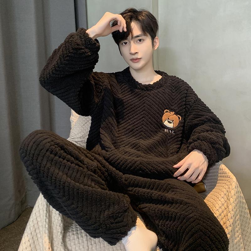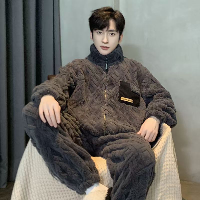 국경 간 잠옷 남성 가을과 겨울 새로운 지퍼 두꺼운 긴 소매 산호 양털 홈 의류 소스 공장 기모 플러스스토어 가기